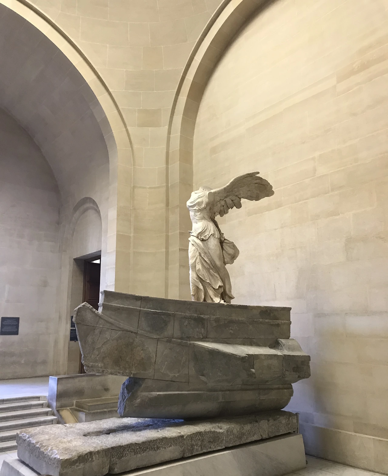 루브르에서 유명한 작품은 너무 많지만 역시 <사모트라케의 니케>는 루브르의 자랑이다. 기원전 220년에서 190년 사이에 제작된 것으로 추정되는 그리스 조각이다. 그리스 신화에서 승리를 관장하는 여신인 니케를 묘사한 대리석상으로 높이는 2.75 미터이다. 발굴 당시 머리와 양팔이 잘린 채로 남아있었다. 로도스섬의 주민들이 에게해에서 일어난 해전에서 승리한 것을 기념하기 위해 사모트라케섬에 세운 것으로 추정된다. 이 조각상은 1863년 프랑스의 영사 겸 고고학자인 샤를 샴푸아소가 발견했으며, 1884년부터 루브르에 소장되었다.