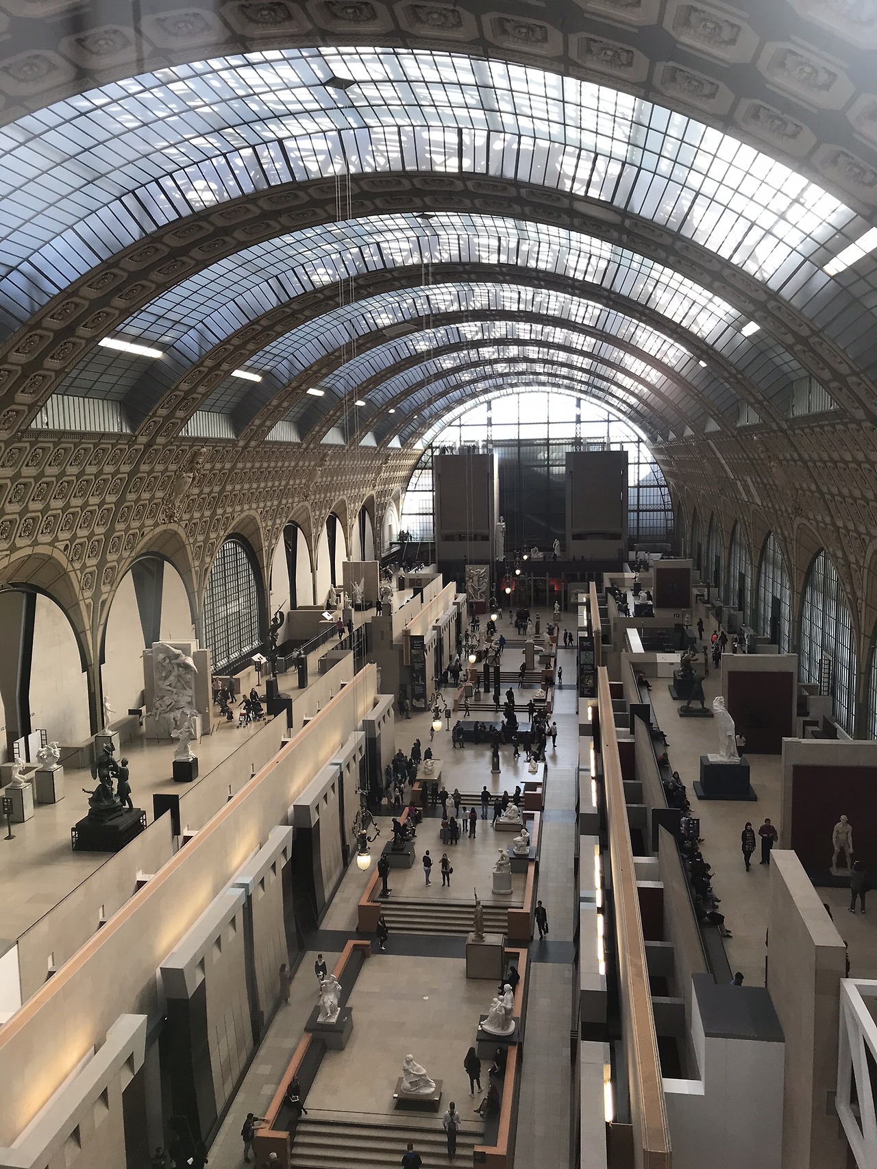 오르세 미술관이 기차역이었다는 사실은 익히 들어서 알고 있지만 미술관에 들어서면 화려했던 19세기의 기차역 모습이 그대로 남아 있다. 호텔등의 부대시설까지 갖추고 있던 기차역의 외형은 그대로 유지되고 있고, 세 곳에 자리한 큰 앤틱 시계가 기차역이었음을 상징적으로 보여준다. 기찻길 자리는 조각상으로 채우고 양옆 플랫폼은 층층이 테마별 회화로 채웠다. 만국박람회에 맞춰서 1900년에 개통된 오르세역은 1939년까지만 해도 프랑스 남서부 노선의 종착역으로 이용되며 하루에 200편의 기차가 오가는 중요한 곳이었다. 기술의 발달로 기차는 점점 길어졌지만 플랫폼을 더 길게 확보할 수 있는 공간이 없었기에 이 역은 점차 쇠퇴하게 된다. 전쟁 중에는 소포 보관소와 포로들이 대기하는 공간으로 사용되었고, 전쟁 후에는 영화 촬영지로도 활용되었으나 이후에는 호텔등 다양한 건축방안이 논의되었다. 센강과 건너편의 루브르 박물관 그리고 튈르리 정원등의 아름다운 주변환경과 현대적 건축물은 어울리지 않는다고 결론 내며, 1978년에 기존의 외형을 유지하며 박물관으로 활용하는 리모델링 프로젝트가 발표된다. 사공이 많으면 배가 산으로 갈 수 있음에도, 각계각층의 여론을 수렴하여 도출된 결과라니 프랑스가 도시계획과 예술보존에 얼마나 신중했는지가 느껴지며 진심으로 부러운 마음이 든다.
