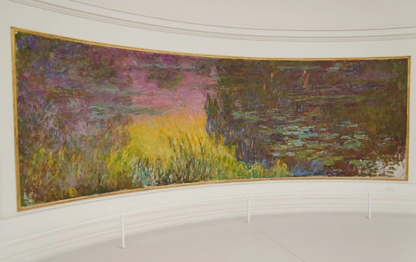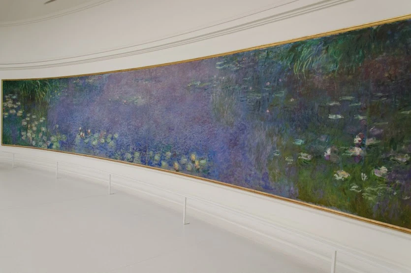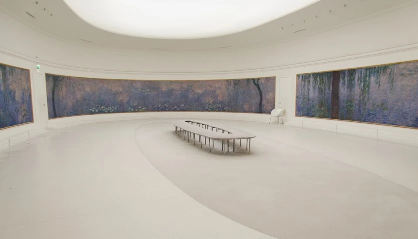 1층의 클로드 모네(1840-1926)의 <수련> 방에 들어가면 공간 그 자체가 예술이다. 자연 채광으로 환한 흰색 공간은 공기처럼 느껴지며 잔잔하고 고요하다. 마치 정원의 벤치에 앉아서 연못을 바라보듯, 가운데에 놓인 기다란 의자에 앉아 한동안 그 정원과 연못을 느껴본다. 오랑주리의 <수련> 작품은 모네의 250여 점 수련 작품들 중에서 마지막에 작업한 가장 대형 사이즈 작품들이다. 모두 다 높이는 2m이고 넓이는 6m에서 17m까지 각기 다른 8개의 작품이 두 개의 타원형 방의 벽을 완전히 둘러싸고 있다. 1918년 11월 11일 세계 1차 대전이 종식된 다음날인 11월 12일에 모네는 평화의 상징으로 두 개의 대형 <수련> 작품을 국가에 기증하겠다는 의사를 밝혔고, 이후에 추가 기증도 약속한다. 그는 1899년부터 86세인 1926년에 사망할 때까지 20여 년 동안 그의 마지막 정착지인 지베르니에서 <수련> 작업에 집중하였다. 오랑주리의 모네방은 해가 뜨면서 빛으로 공간이 채워질 수 있도록 설계되었다. 작품의 배치에도 얼마나 고심을 했는지 일출 색상이 짙은 작품은 동쪽에, 일몰 색상의 작품은 서쪽으로 배치하여 최대한 자연의 빛으로 작품을 느낄 수 있도록 만들었다. 처음부터 이곳이 각광받은 건 아니었나 보다. 그가 사망한 지 몇 달 후인 1927년 5월부터 그의 작품 27점이 오랑주리에 전시되었는데, 당시 그의 후기 작품에 관심이 없었던 미술 비평가들은 거의 방문도 하지 않았다. 참 세상 일은 알 수가 없는 거 같다. 세월이 지나 2006년 건물을 보수하고 재개관하면서 오랑주리는 가장 사랑받는 미술관이 되었고, 2023년 뉴욕 크리스티 경매에서는 세상에 50년 만에 모습을 드러낸 <수련> 2m 대작 한 점이 7401만 달러에 판매되었다.
