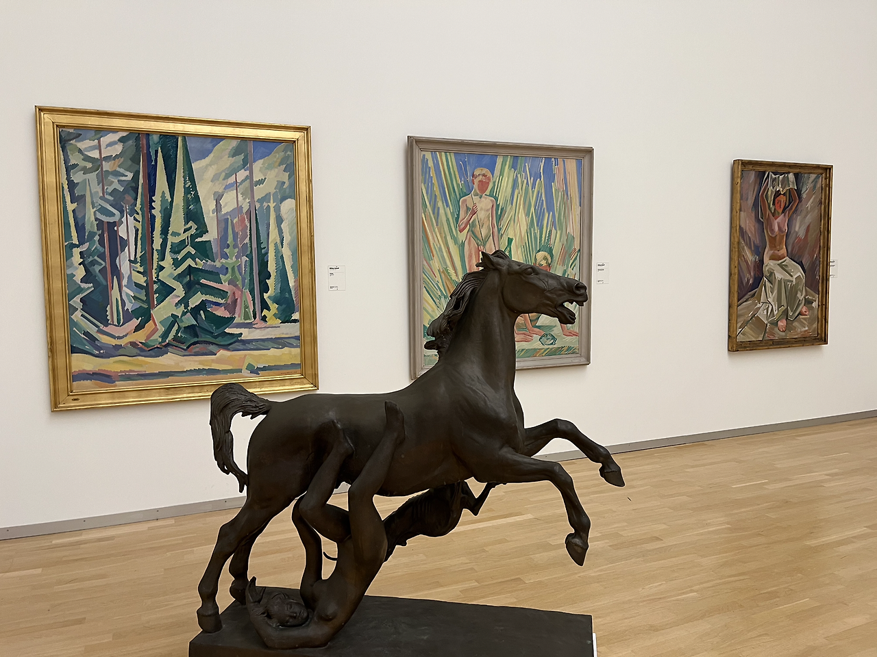 깜짝 선물의 방이 있다. 1900년도의 프랑스 인상파 작품은 기대도 하지 않았는데 꽤 많은 작품을 골고루 만날 수 있었다. 다양한 프랑스 작가의 작품들로 골고루 구성되어 있고 책에서 보던 익숙한 그림들의 실물을 영접할 수 있다. 어떻게 상당한 규모의 프랑스 인상파 작품들을 보유하게 되었을까. 정치가이자 예술품 수집가인 요하네스 럼프(Johannes Rump)는 1928년에 자신의 초기 프랑스 모더니즘 회화 컬렉션을 이 박물관에 대규모로 기증했다. 그는 코펜하겐의 시민대표 사회 민주주의자로써 평범한 사람들이 예술에 접근할 수 있어야 한다는 신념을 가지고 있었다. 일찍부터 미술품을 수집하기 시작했으며 특히 조르주 브라크, 앙드레 드랭, 앙리 마티스, 피카소 등의 컬렉션을 보유하고 있었다. 이 경우처럼 과거 한 인물의 평범하지 않던 앞선 생각이 후손에게는 큰 문화유산으로 남겨지는 경우를 종종 보게 된다. 일본에도 그 시절에 서양미술에 눈을 뜨고 어렵게 작품을 수집한 기업가들의 덕분에 지금 그들이 보유한 미술품의 가치는 상상 이상이다. 마티즈 그림 앞에 옹기종기 모여 앉아서 선생님의 설명을 듣고 있는 아주 어린아이들의 모습을 보니 뭔지도 모르면서 유아 때부터 현장에서 작품들을 접할 수 있는 환경이 참 부러웠다. 마침 마티즈전시가 열리고 있어서 관람했는데 너무나 재밌는 기획이었다. 마티즈 그림의 재발견이고 오래 기억에 남을 전시였다. 이 전시에 대해서는 따로 챕터를 만들어야겠다. 국립미술관 위상에 걸맞게 시대별로 작가별로 너무나 좋은 작품들을 알차게 보여준다. 그리고 공간마다 시대적 배경설명과 작가와 작품 하나하나의 디테일까지 친절하게 꽉 찬 내용을 제공해서 낯선 덴마크 미술을 보는데 도움이 많이 된다. 지속적으로 덴마크 황금시대 미술 작품들도 테마를 잡고 기획해서 전시를 하는 듯하다. 지난 과거의 전시와 앞으로 다가올 전시들을 관심을 갖고 찾아보며 덴마크 그림이랑 더 가까워지고 싶어졌다.
