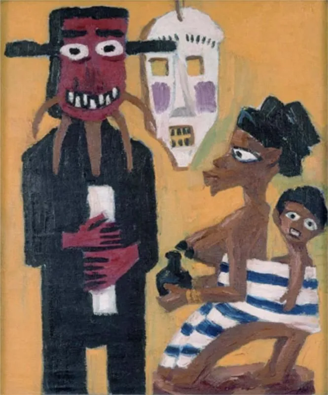 또한 표현주의 작가들이 남태평양과 아프리카에서 강한 영감을 받고 가면과 원시인물의 조각상 토착민들의 모습을 그리고 조각하고 수집하는 경우가 많은데, 놀데의 작품에서도 그런 특징을 볼 수 있다. 그는 1913년부터 모스크바, 시베리아를 거쳐 한국, 일본, 중국을 거쳐 독일령 뉴기니까지 긴 여행을 다녀온다. 그 시대에 시베리아를 횡단해서 한국까지 오다니, 우리나라에는 그가 다녀간 기록이 없지만 그의 자서전과 그림에서는 한국을 다녀간 흔적을 볼 수 있다. 우리나라 사람들을 그린 인물 드로잉 몇 점이 있고 우리나라에 대해서 신비하고 아름답다고 묘사하고 있다. 이국적인 모티브를 그냥 보아 넘기지 않은 것은 한국 방문 이전에 그린 <The missionary> 그림의 장승을 통해서도 알 수 있다. 아마도 베를린 박물관에 있는 장승‘을 보고 영감을 받았을까 생각해 본다. 또한 뉴기니에서 그린 인물화와 풍경화등은 그들의 문화를 진정성 있게 녹여내고 있는 게 느껴진다. 폴 고갱을 표현주의 초기 작가로 보는데, 놀데의 뉴기니에서의 그림은 고갱이 타히티에서 8년을 머무르며 쏟아낸 향토적인 그림들과 비슷한 느낌이 든다. 그러고 보니 고갱이 그린 십자가의 예수님과 놀데가 그린 십자가의 예수님 모습이 많이 닮은 듯하다.