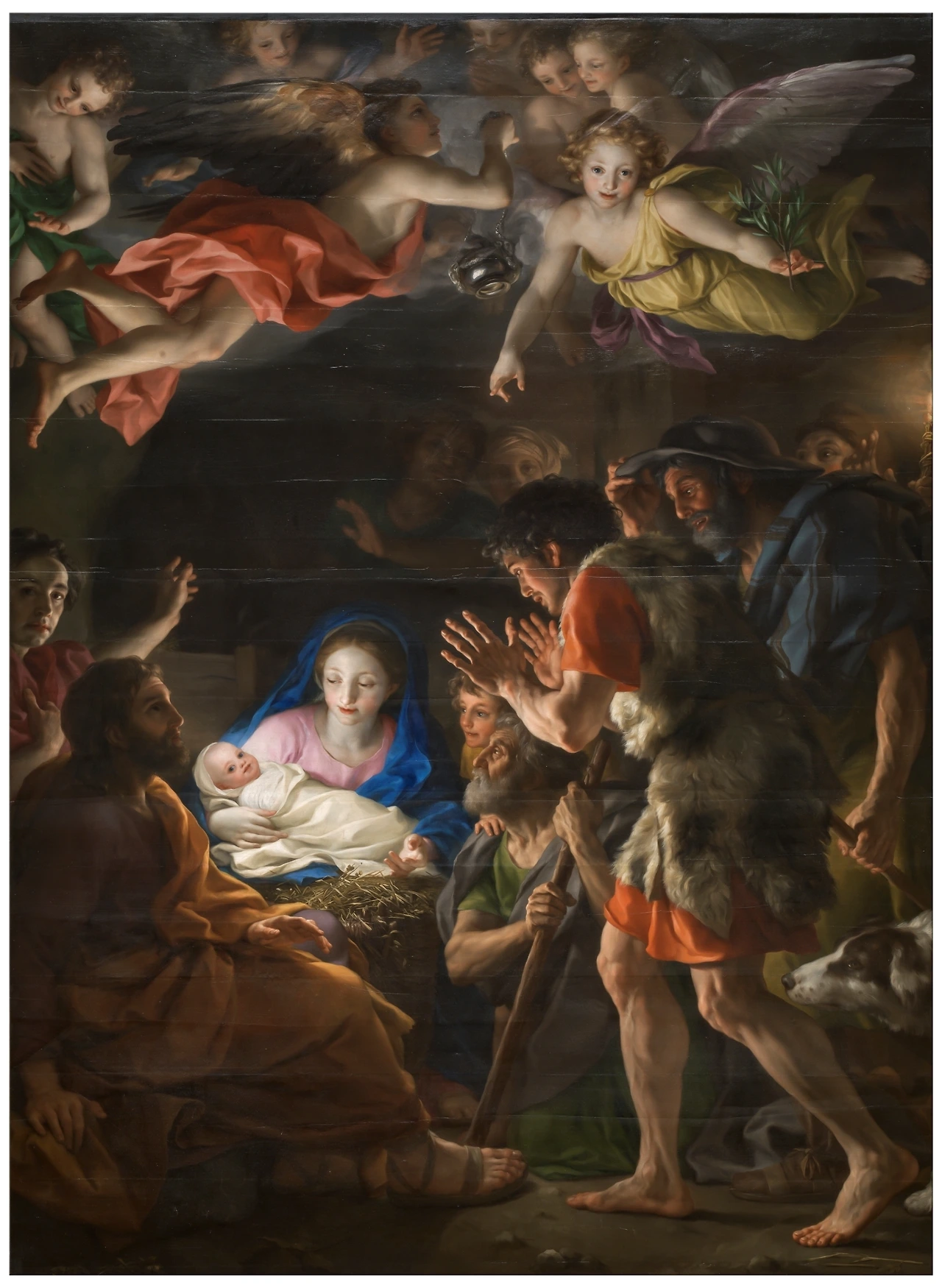 기독교 성화의 대표 주제인 <목자들의 숭배>는 수많은 작품이 남아있다. 엘 그레코도 여러 점의 <목자의 숭배> 제단화를 남겼는데, 프라도에 전시되어 있는 작품은 그가 사망하기 직전인 1614년에 완성되었다. 그의 작품들은 성서의 한 장면을 기본으로 묘사했는데 상상력과 직관을 더하여 성서보다 더 생생한 장면이 연출되었다. 형태보다는 빛과 색의 사용을 중요시했고, 그림 속 인물들은 빛을 품고 있거나 빛을 반사시켜 초자연적이고 신비롭게 표현되었다. 후기로 갈수록 주변 상황은 무채색으로 처리되고 중심인물들은 원색을 사용하여 강조하였다. 원색도 아주 기본적인 삼원색을 기본으로 한다. 그림 속 인체 비율은 길고 뒤틀리는 표현으로 격렬한 몸짓이 느껴진다. 그만의 특징이 너무나 확실해서 미술관을 다니다가 엘 그레코의 그림은 무조건 빠르게 알아볼 수 있는 즐거움이 있다. 아래의 두 작품 안톤 라파엘 멩스 (독일 1728-1779)의 작품과 무리요 (스페인 1617-1682)의 작품으로 엘 그레코의 작품과 비교해 보자. 모두 다 완벽하고 아름다운 그림이다. 단지 엘 그레코의 그림은 완벽하고 아름다움에 더해 하늘하늘 움직이는 듯 역동적이다.