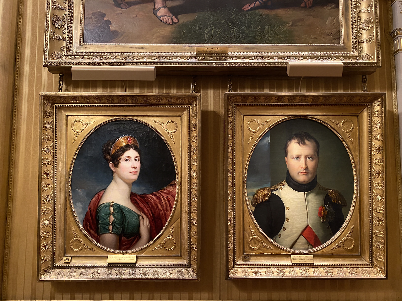 2층에는 나폴레옹과 그의 가족들의 초상화도 여러 점도 볼 수 있다. 웰링턴과 나폴레옹은 서로 만난 적이 없었다. 워털루 전쟁에서 처음으로 적군으로 만났음에도 웰링턴은 늘 나폴레옹을 존경한다고 표현했고, 그의 초상화도 직접 수집했다고 한다. 웰링턴이 프랑스 대사이자 연합국 점령군의 사령관으로 파리에서 지내던 1814년에 대사관저로 사용할 용도로 Hotel de Charost를 구매했다. 이 저택은 지금까지도 파리주재 영국대사의 공식 관저로 사용되고 있는데, 나폴레옹이 가장 아꼈던 여동생인 Pauline Bonaparte가 살던 곳이었다. 폴린은 이 저택을 매각하고 엘바섬에서 유배 중인 나폴레옹을 찾아가서 필요한 재정을 도왔다고 한다. 이후 웰링턴은 런던으로 귀국하면서 Apsley House에 정착하게 되었고, 그의 컬렉션에는 프랑스 역사화가 Robert Lefèvre (1755-1830)가 그린 폴린 보나파르트와 나폴레옹 부부의 초상화가 있다. 폴린의 초상화는 웰링턴이 가장 아끼던 그림이었다고 한다.