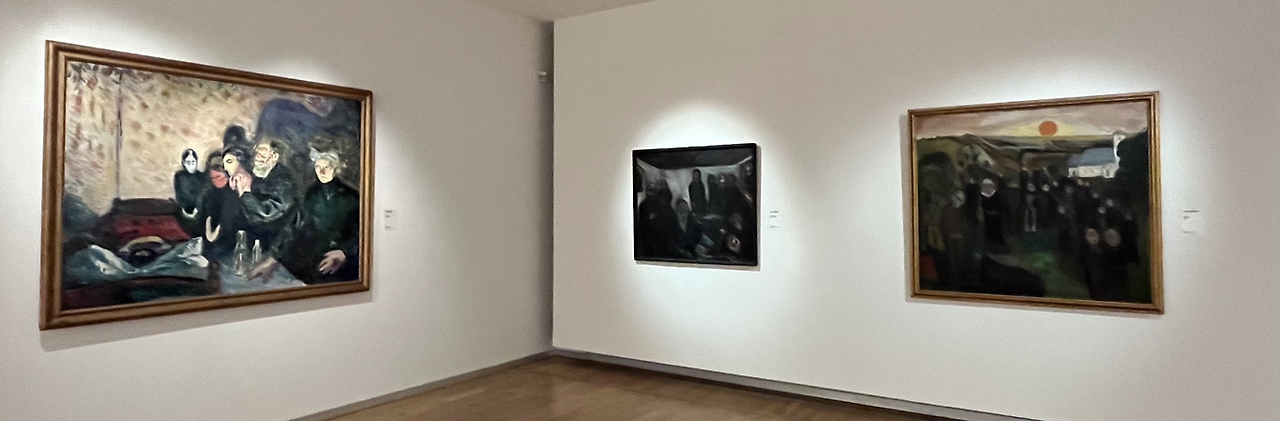 덴마크 현대 회화부터 보고 싶어서 연결된 신관으로 먼저 갔다. 원 건물은 그대로 보존하며 신관을 증축했고, 유리 돔으로 두 건물을 연결한 현대적인 감각의 멋진 건축물이었다. 1900년대 그림 첫 번째 방에는 죽음을 의미하는 그림이 가득했다. 단번에 Edvard Munch 에드바르트 뭉크 (1863-1944, 노르웨이)의 작품임을 알 수 있었으나, 찬찬히 보니 전부다 뭉크 그림은 아니었다. 무척 흡사했지만 옆의 작품들은 Jens Søndergaard 옌스 쇠네르고르 (1895-1957, 덴마크)의 작품들이었다.