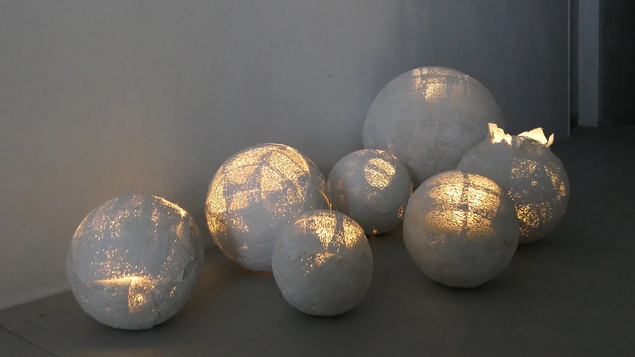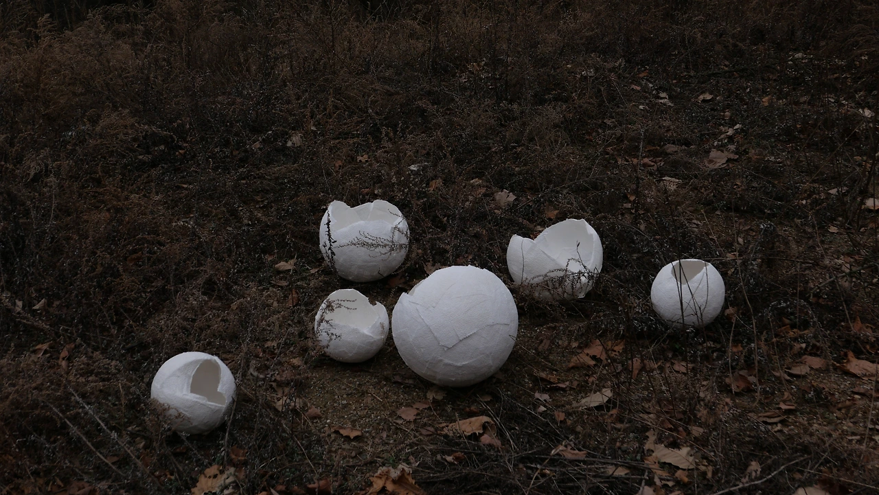 2. 종이로 만든 공룡 알들인가. 코로나 때 한국에서 지내면서 만들었다. 정확한 의도는 모르겠지만, 외갓집 버려진 땅에 방치해 두었더니 한해 두 해가 지나면서 녹아 사라져 흔적도 없어졌다.