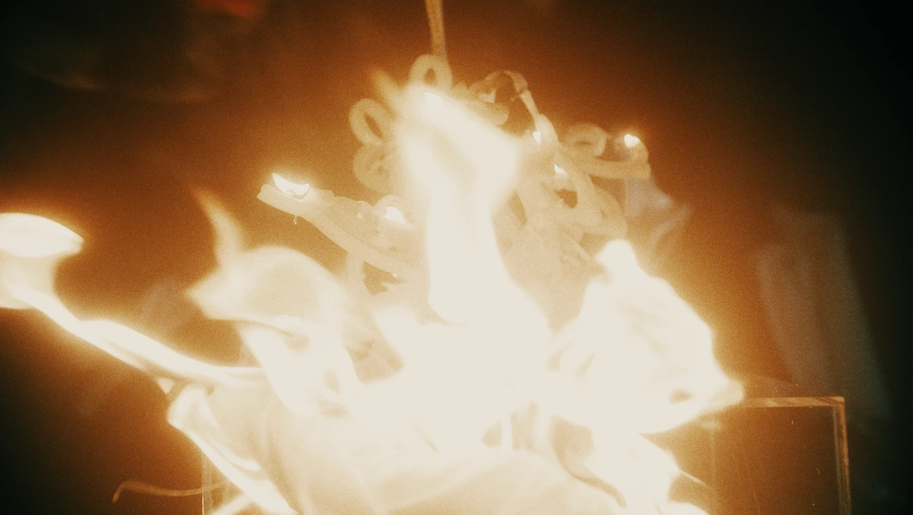 3. 수없는 밤샘작업을 하며 완성한 샹들리에. 전체를 초로 제작하였다. 샹들리에에 불을 붙이고 촬영하였고, 촬영이 끝난 후에는 촛농 덩어리만 남았다. 허무한 작품. 이 작품은 정말 멋졌다. 영상으로 남아있는데, 활활 타는 샹들리에의 배경 음악도 너무 멋졌다. 부모 마음으로 봤을 때 이 작품은 정말 훌륭했다고 생각한다.