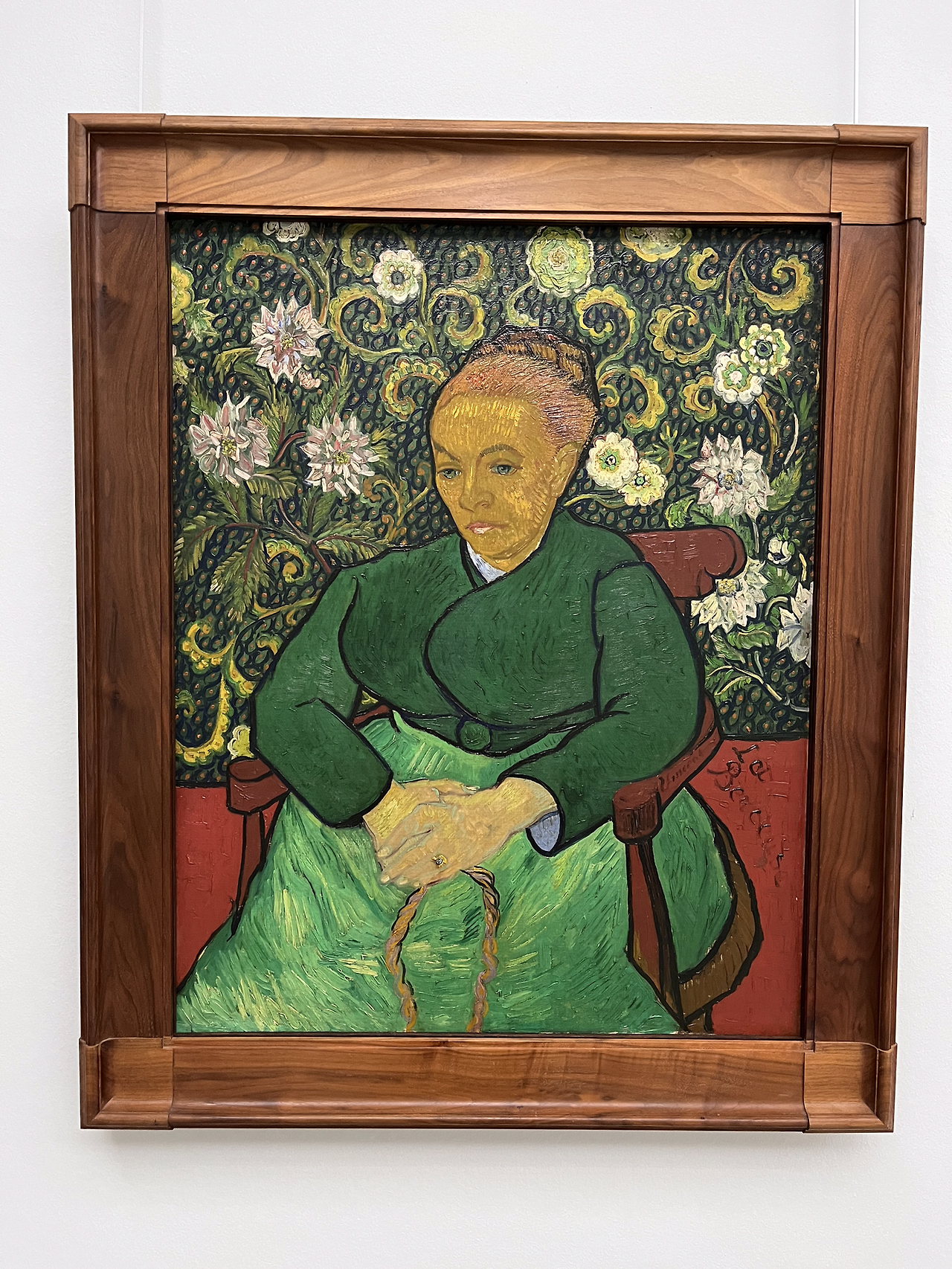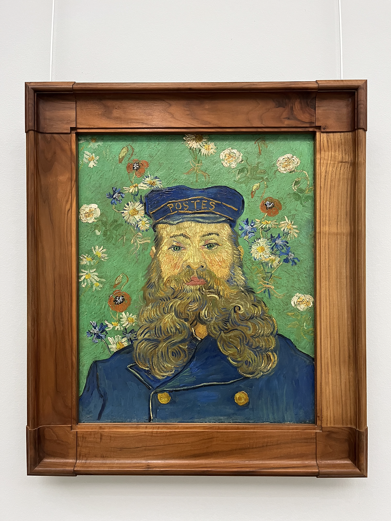 반고흐 작품을 전체적으로 보면 과수원 그림이 참 다양하고도 많다. 과수나무 이름도 구체적이다. 자두나무, 살구나무, 복숭아나무, 배나무, 아몬드나무 그리고 이 그림들은 대부분 다 Arles 아를에서 머무르던 시기인 1888-1889년 정도에 그려졌다. 특히 3월부터 4월 과실수의 꽃이 만개하던 이 한 달 동안에 14점이나 그려냈다. 남프랑스의 태양과 밝은 하늘아래 아름다운 기후는 고흐가 내면에 품고 있던 색채를 다 꺼내서 작품에 몰입할 수 있게 도와준 듯하다. 고흐는 눈앞에 펼쳐진 과수들과 반짝이는 별빛을 보며 1년 동안 200여 점의 작품을 쏟아낼 수 있었다. 이들 중에는 언제 봐도 황홀감을 느끼게 해주는 명작들이 대거 포함되어 있다. 노란빛과 주황색 사용으로 강한 태양의 기운으로 품기도 하고, 짧은 붓터치와 테두리 선으로 강하고 긍정적인 느낌을 주기도 한다. 고흐는 이곳에서 잘 지내다가 후반부에는 정신발작과 고갱과의 다툼 끝에 자기 귀를 베어내는 사건을 저지르기도 한다. 그래도 고흐는 차분하게 그림을 계속 그렸다. 나는 마담 룰랭부인과 우체부 룰랭 아저씨의 초상화를 좋아한다. 초록색이 이렇게 세련되고 예쁠 수 있나. 고흐의 해바라기도 아를에서 그린 것들이 가장 활짝 피어있고 풍성하다. 아무래도 해바라기가 가장 아름다운 시기일 가을 햇살아래에서 직접 보고 담아서 그런 게 아닐까 싶다.
