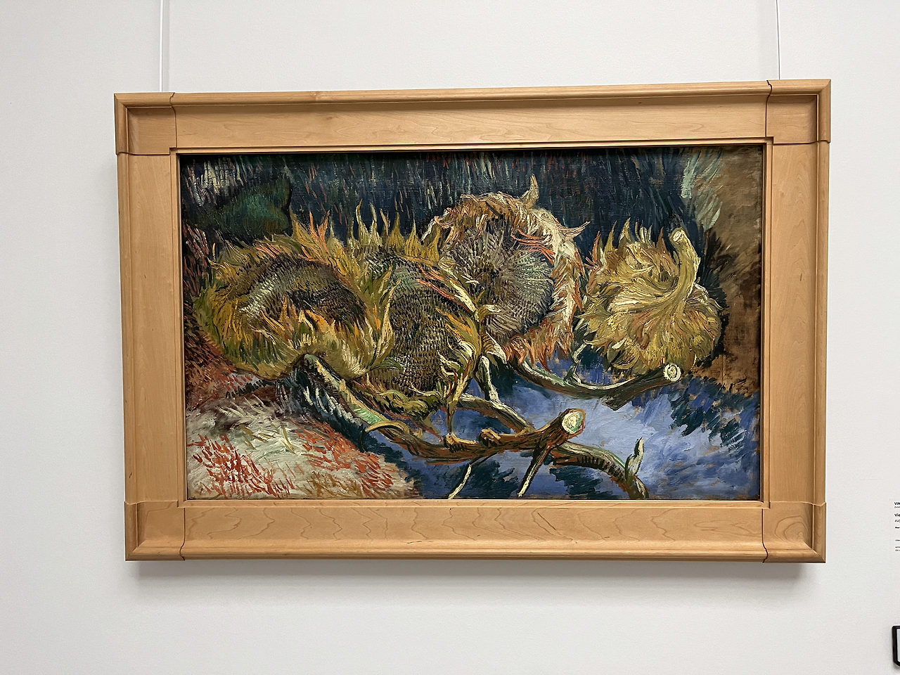 미술관 앞 정원에서 사진을 찍느라 정신이 없다. 빨간색 조각이 포인트다. <포터블 화분>이라는 제목으로 자루 안에 담긴 식물들도 정원에 놓여 있었다. 날씨가 급변하기 때문에 지체 말고 미루지 말고 카메라에 원 없이 담아야 한다. 시시각각 구름이 변한다. 반고흐 작품들은 4번째 방에 있다는 정보는 갖고 있었지만, 뷰가 너무 예쁜 카페테리아에 앉아서 커피를 마시며 한숨을 돌리고 4번 방을 제외한 다른 방부터 보기 시작한다. 큐비즘 작품들을 모아뒀는데 컬렉션도 너무 대단하고 그 멋진 작품들을 그룹핑해 둔 큐레이팅에 또 한 번 놀란다. 큐비즘 작품들을 그렇게 좋아하진 않았었고 사실 별로 관심 없는 분야인데 작품들을 너무 잘 묶어둬서 그런지 한눈에 쏙 잘 들어온다. 이름조차 낯선 작가들도 많았고 큐비즘의 느낌이 너무 신선했다. 조각의 방도 있고 현대 독일작가의 작품들도 있다. 마침내 4번 방으로 들어간다. 양옆으로 줄지은 대작들-Claude Monet, Georges Seurat, Pablo Picasso, Piet Mondrian-을 애써 외면하며 제일 안쪽의 반고흐 방까지 직진했다. 멀리서부터 보이는 그의 작품들이 한 줄로 서서 관람객들을 맞이한다. 이렇게 귀한 작품들이 골고루 방 하나에 한가득 있다니 정말 어쩔 줄을 모르겠다. Helene가 이 세상을 떠날 때에 일렬종대한 반고흐 작품들 앞에 꽃다발을 놓고 빈소를 차렸다니 감동적이다.