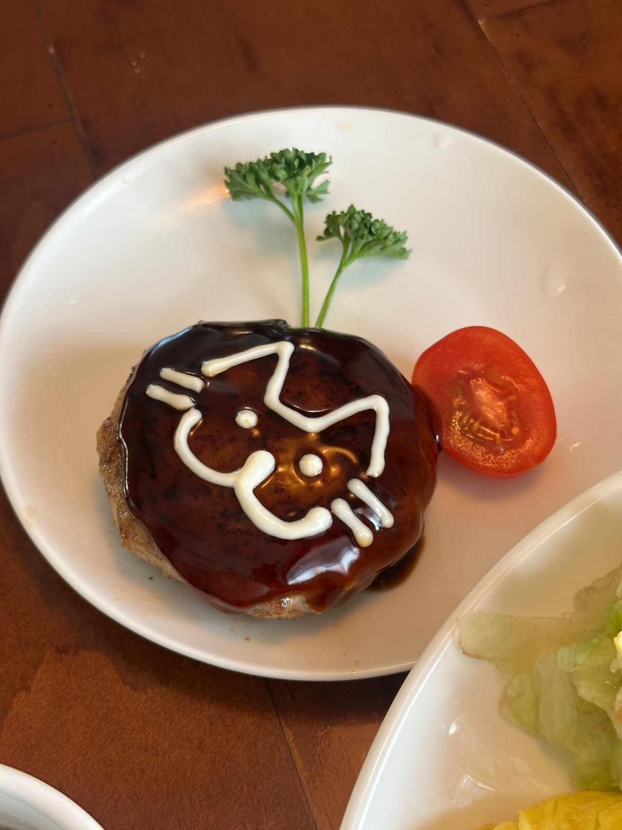 혼자였지만 의외로 4인석에 앉게되었다. ‘언제 혼자 4인석 써보겠어?‘ 생각하며 오므라이스와 ‘냥박스테이크’를 주문했다. 함박스테이크 위에 고양이를 그려주는 메뉴. 귀여운 비쥬얼에 맛은 기대도 안 했는데 정말 맛있었다. 입을 데어가며 허겁지겁 '순삭’해버렸다.