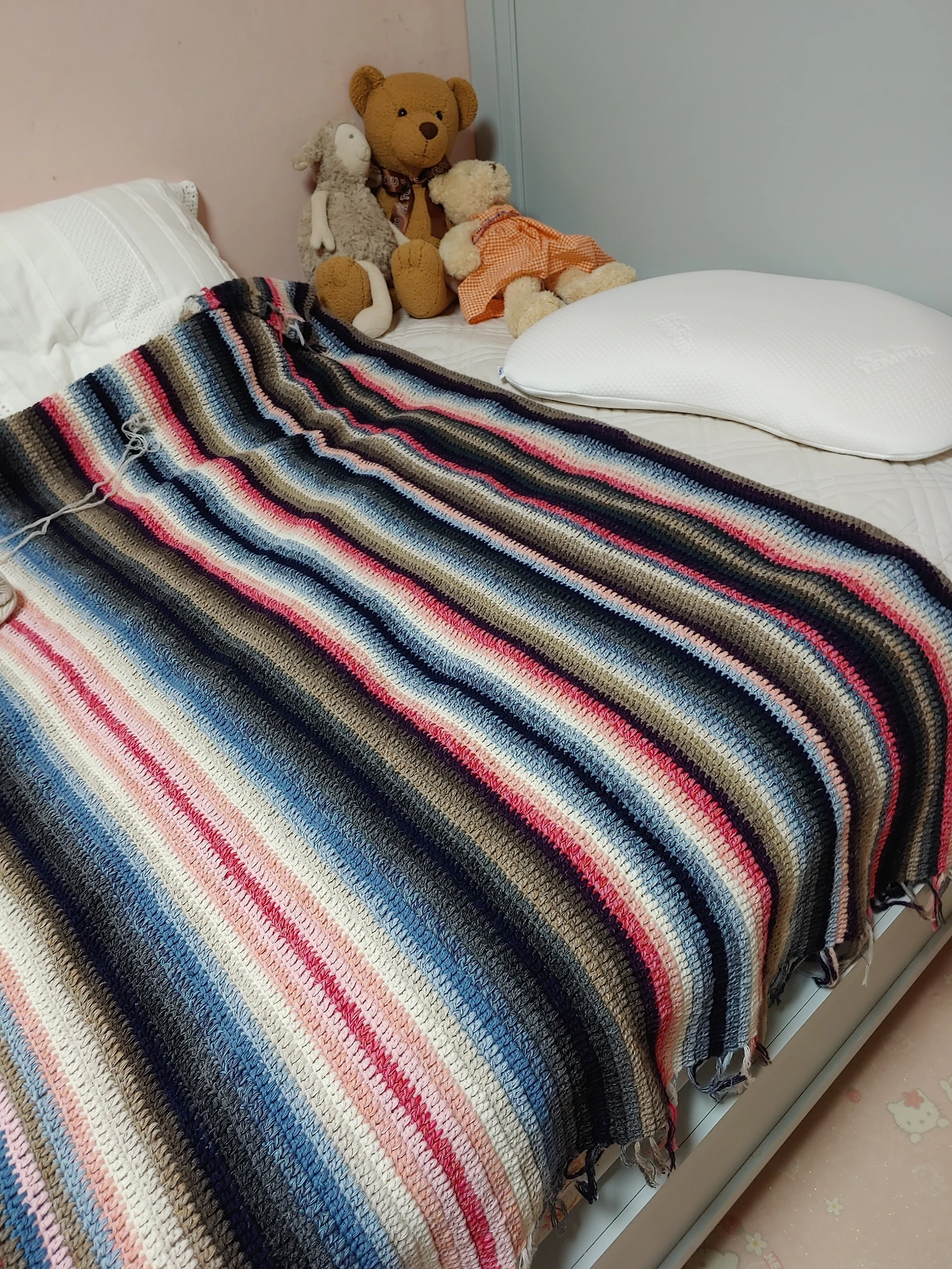 아들은 내가 떠 준 베드 스프레드를 깔고 자고 나더니