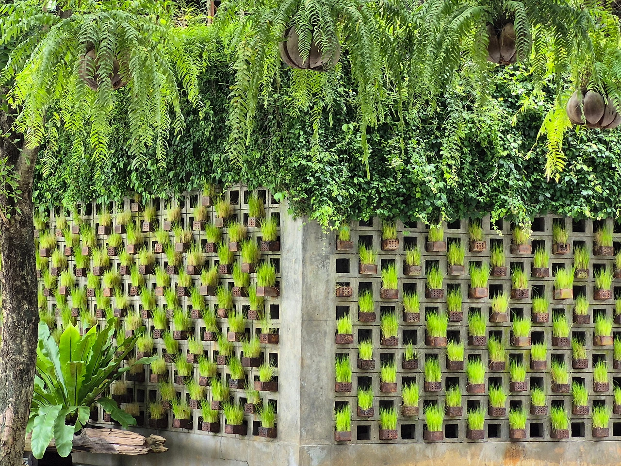 동남아라고는 해도 머그컵 만한 포트에 벼를 심에 벽에 촘촘히 채워 놓은 게 눈에 들어왔다.