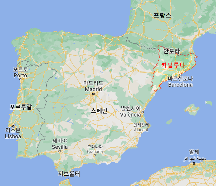 스페인과 스페인 동북부의 카탈루냐 지역