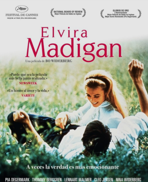 서커스단의 줄타기 소녀 엘비라 마디간은 귀족 출신의 젊은 육군 장교 식스틴과 사랑에 빠진다. 이미 아내와 두 아이를 둔 식스틴은 전쟁을 혐오하여 탈영했고, 엘비라는 서커스단에 얽매인 삶이 뻔했다. 둘은 자유를 찾아 도주한다. 그러나 사랑의 도피행각은 금방 현실의 벽에 부딪히기 마련. 돈은 떨어지고 숨어 다니는 일도 쉽지 않다. 허기진 엘비라는 산딸기를 따먹고 들풀을 뜯어먹기도 한다. 결국 두 사람은 마지막 피크닉을 종교의식처럼 치르고, 이루어질 수 없는 사랑을 죽음으로 완성하기로 한다.