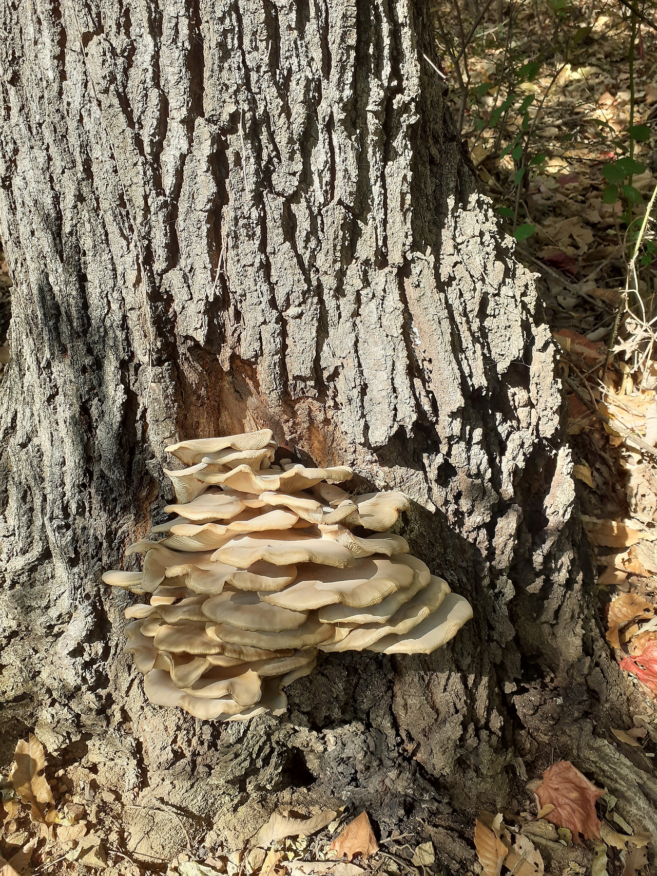 참나무 밑동에 보기 좋은 버섯 군락을 발견했다.