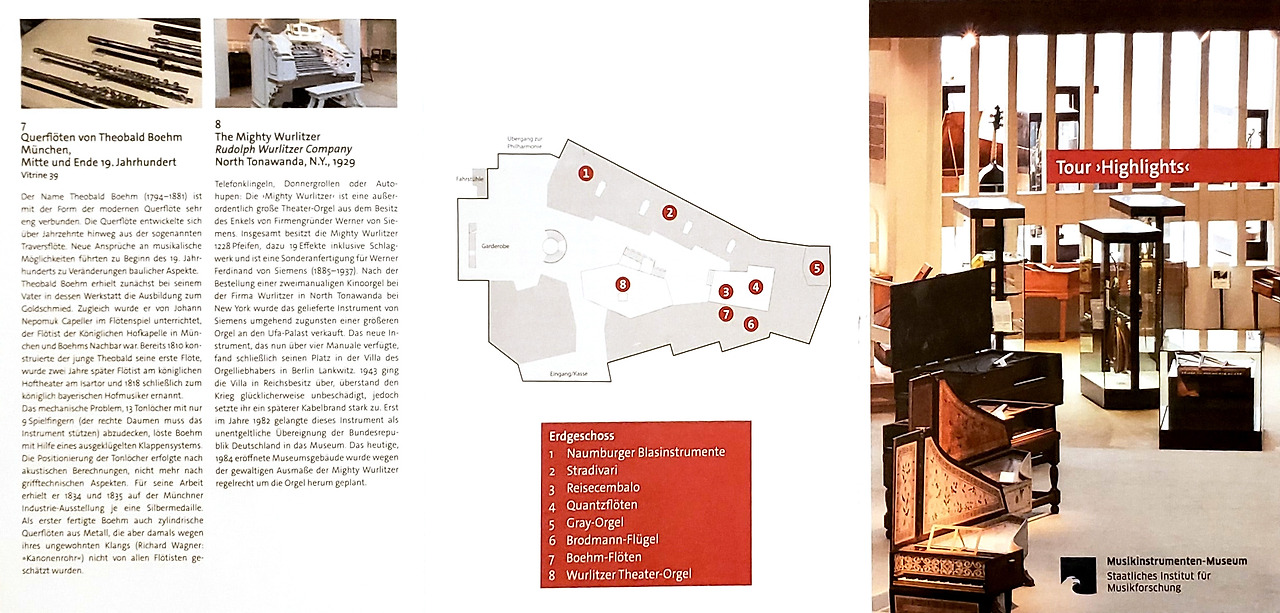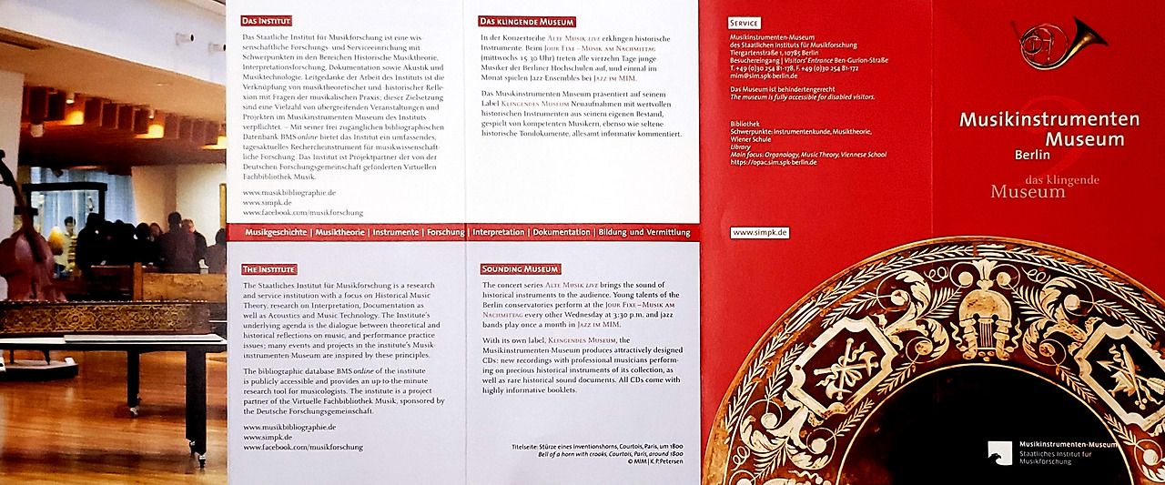 16세기 이래 3,500여 점의 다양한 악기를 소장하고 있는 베를린 최대의 악기 박물관이다. 2층으로 되어있는 규모가 크지 않은 뮤지엄이지만 신기한 악기들을 많이 볼 수 있다. 특히 다양한 피아노가 아주 많았는데 조금씩 변형된 피아노들이 마치 서로 다르게 진화된 동물을 관찰 하는 듯 흥미로웠다.