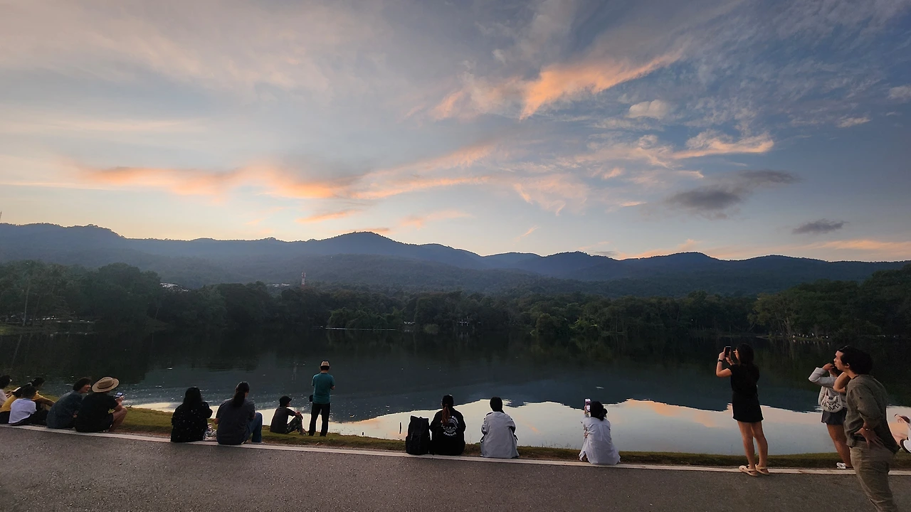작년 3월, 보자마자 탄성이 나왔던 치앙마이 대학의 앙깨우 호수는 미세먼지 탓으로 아름다움을 모두 발산하지 못했다. 그때의 아쉬움이 남아 다시 찾아간 것이었다. 늦은 오후, 맑은 하늘 아래 보이는 호수의 자태는 역시 대단했다. 희미했었던 산의 풍광은 사라진 미세먼지 덕분에 선명하고 늠름했으며 호수에 비친 산 그림자는 아늑했다. 곧 호수 위 드넓은 하늘은 주황색 노을로 물들었고 호숫가 언덕 위는 흘러가는 아름다움을 잡으려는 사람들의 몸짓으로 넘쳐났다. 그 순간 머릿속에 섬광이 지나갔다.