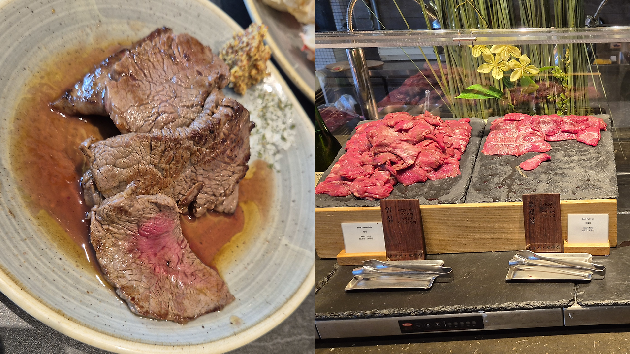 여기는 특이하게 원하는 고기를 선택하여 셰프에게 전달해 주면, 방금 조리한 고기 요리를 맞볼 수 있는 '비프 라이브 스테이션'이라는 코너가 있습니다.