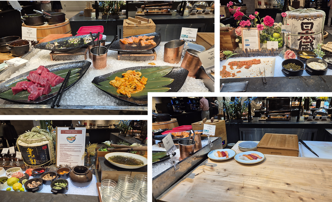 뷔페 입구에 위치한 회와 초밥 코너인데, 생각보다 종류가 많지 않아 좀 실망스러웠습니다.