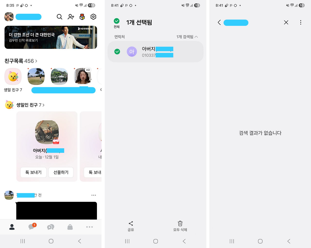 계속 휴대폰에 남기고 싶은 아쉬움이 남기는 하지만, 다른 사람의 프로필 사진과 아버지가 연결되어 있는 것은 불편하네요.