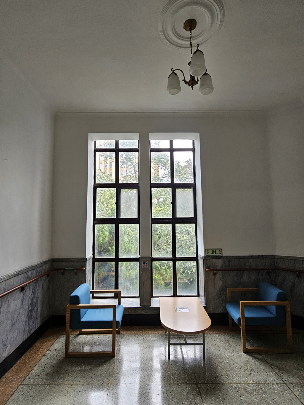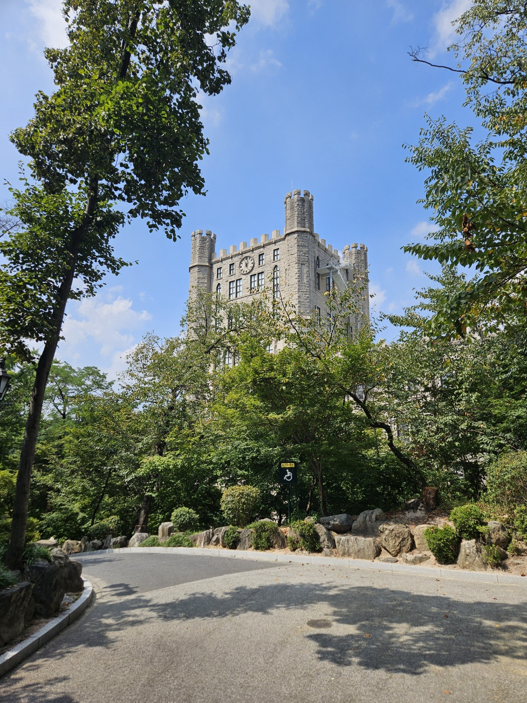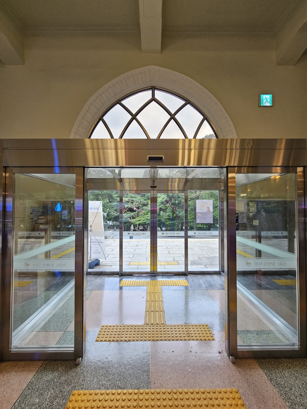 밖에서 본 도서관과 안에서 나갈 때 도서관