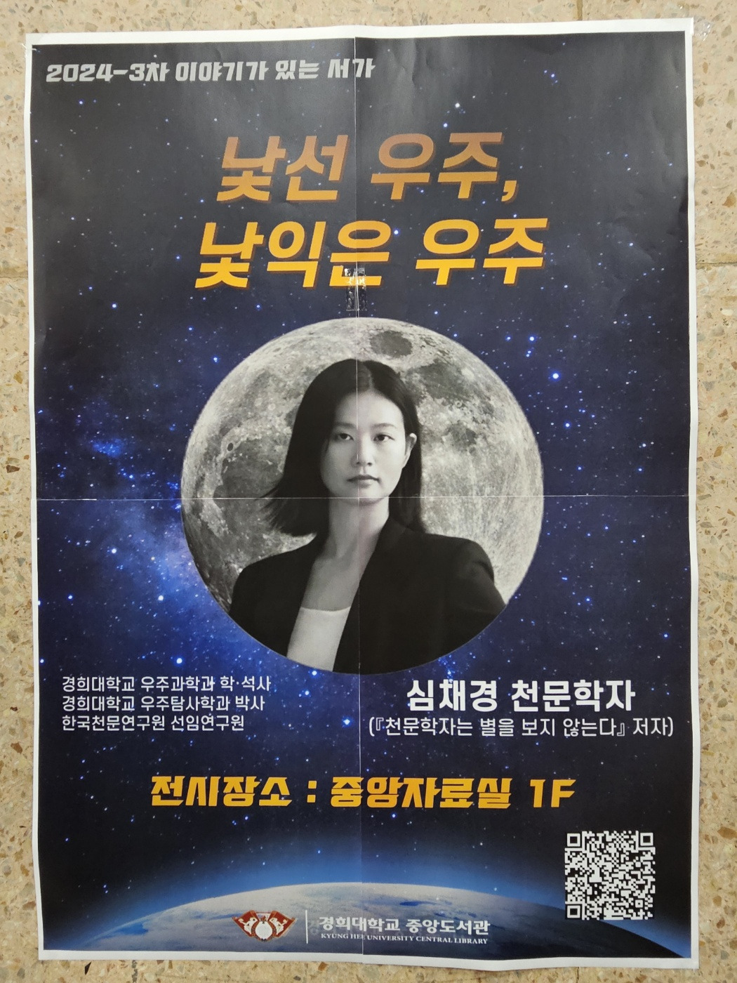 도서관에서 진행하는 각종 행사들. 수업시간과 겹쳐서 심채경 박사님 독서 토론회에 가지 못하는 것이 너무 아쉽다.