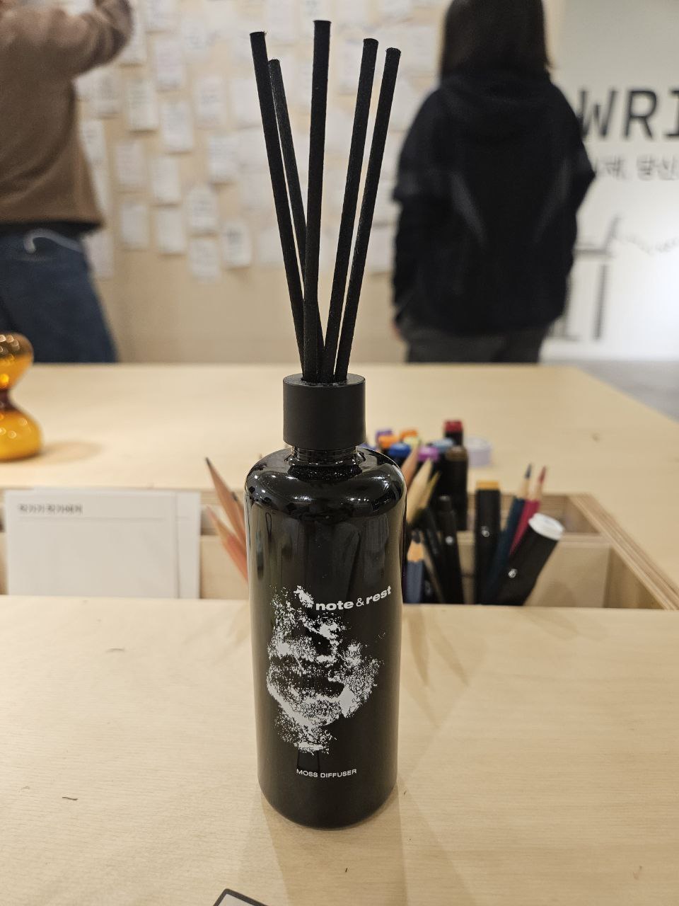순간 모든 것이 조용하게 느려졌다. 오브제를 하나씩 만져보는 손, 글을 살피는 표정, 내가 쳐다보고 있는 건 안중에도 없는 듯한 집중한 모습이 보였다. 그 사람은 나처럼 쉽게 감정적으로 오르락내리락 들뜨거나 가라앉지 않았다. 최소한 겉으로는 그렇게 보인다. 고요하게 자신의 내면에만 집중해서 사유하고, 팝업 전시장에 전시된 브런치 작가들의 책을 읽어보거나 글감을 둘러보면서 자신의 구상과 연결시키고 있는 것 같았다.