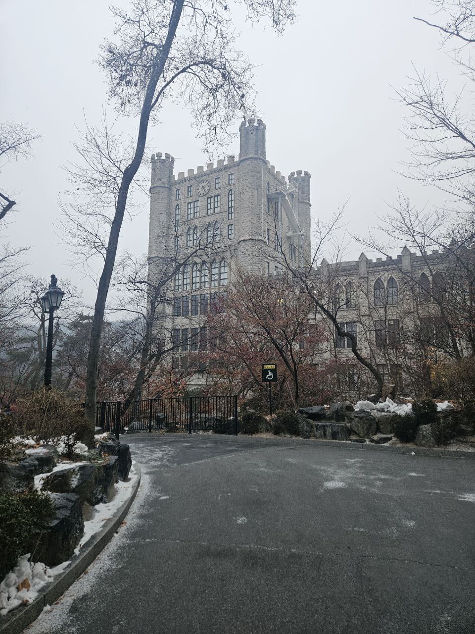 벚꽃 버전, 비 버전, 낙엽버전, 눈 버전에 이어 염화칼슘 버전도 수집한 "식당 가는 길바닥".