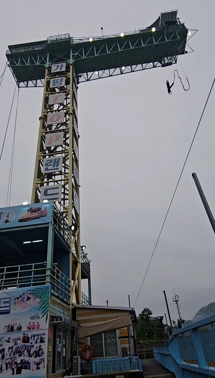 점프에 관해서는 뭐라고 할 수 있을지 잘 모르겠지만, 일단 막상 아래로 북한강이 보이는 점프대 끝에 서서 카운트 다운을 기다릴 때는 무서운 것 같은 느낌이 들었다. 그걸 계속 보고 있으면 안 뛰고 싶다는 생각이 들기 시작할 것 같아서 카운트 다운 숫자가 세 번째가 됐을 때 얼른 뛰어버렸다. 발로 점프대를 박차고 앞으로 튀어 나가서 몸이 공중에 떠있는데도 직원 분 구령은 계속되길래 '아 좀 빨리 뛰었나 보네.' 하는 생각을 했다. 그게 번지점프를 하고 처음 한 생각이었다는 게 웃겼다.