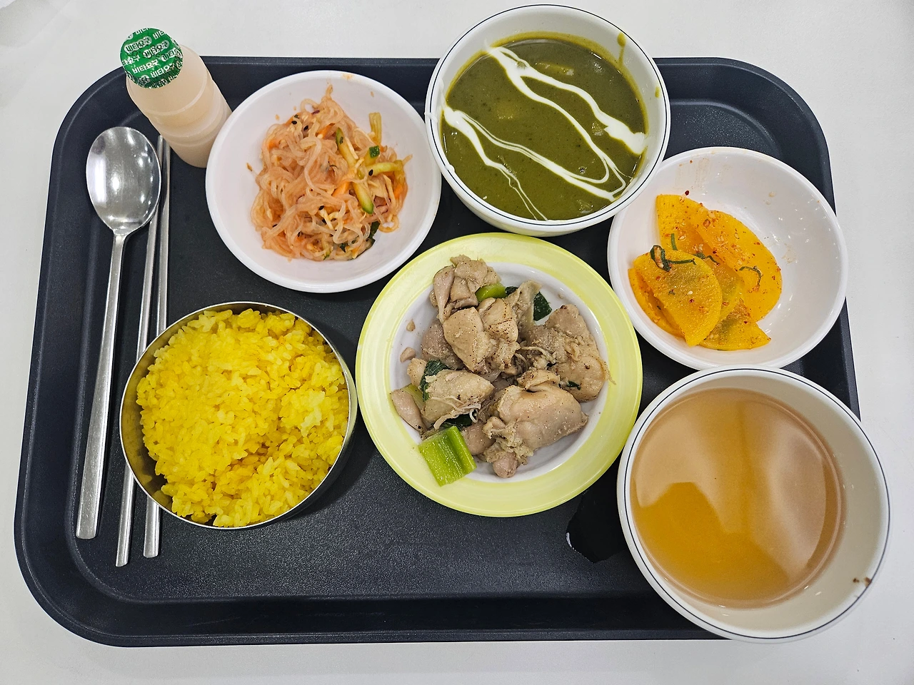 오늘은 학교 급식 체계에 전환점이 찍힌 날이다. 반 공기 옵션이 생긴 것이다. 아침에 잇츠미 앱으로 식권을 구매하고 식권 QR코드를 기계에다가 찍었다. "잇츠미 주문~" 쾌활한 음성 안내가 나오고 나서 내 차례를 기다려 밥을 받았다. 근데 밥이 노란색인 것도 특이했는데 밥 두는 곳에 처음 보는 작은 푯말이 두 개 생겼다. 하나는 "반 공기", 하나는 "한 공기"라고 써져 있었다.