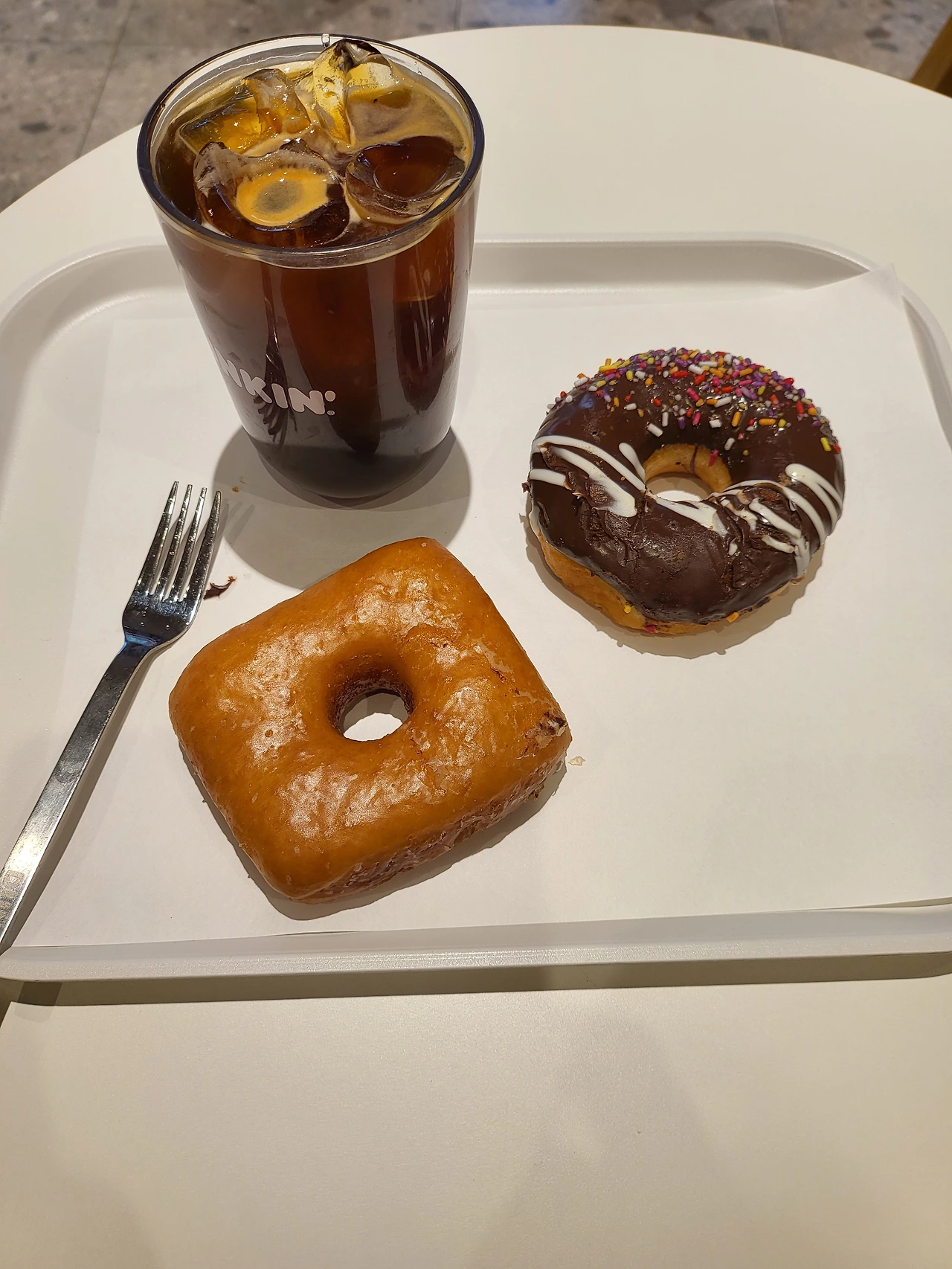매장 안에서 커피랑 도넛을 섭취하면서 정말 피서를 했다. 행사 매장을 확인해보지 않은 탓에 헛걸음 스택이 쌓였었고 그래서 제대로 도착해서 마셨던 아이스 아메리카노는 생명수 같았다.