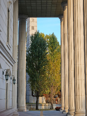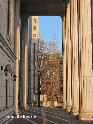 오늘 아침에는 마지막으로(곧 돌아올 거지만) 산책 코스 끝의 정해진 자리에서 늘 그랬듯 기숙사 사진을 찍었습니다. 특별한 날이라 그런가 하늘색도 뭔가 더 평소보다 유니크해 보입니다.