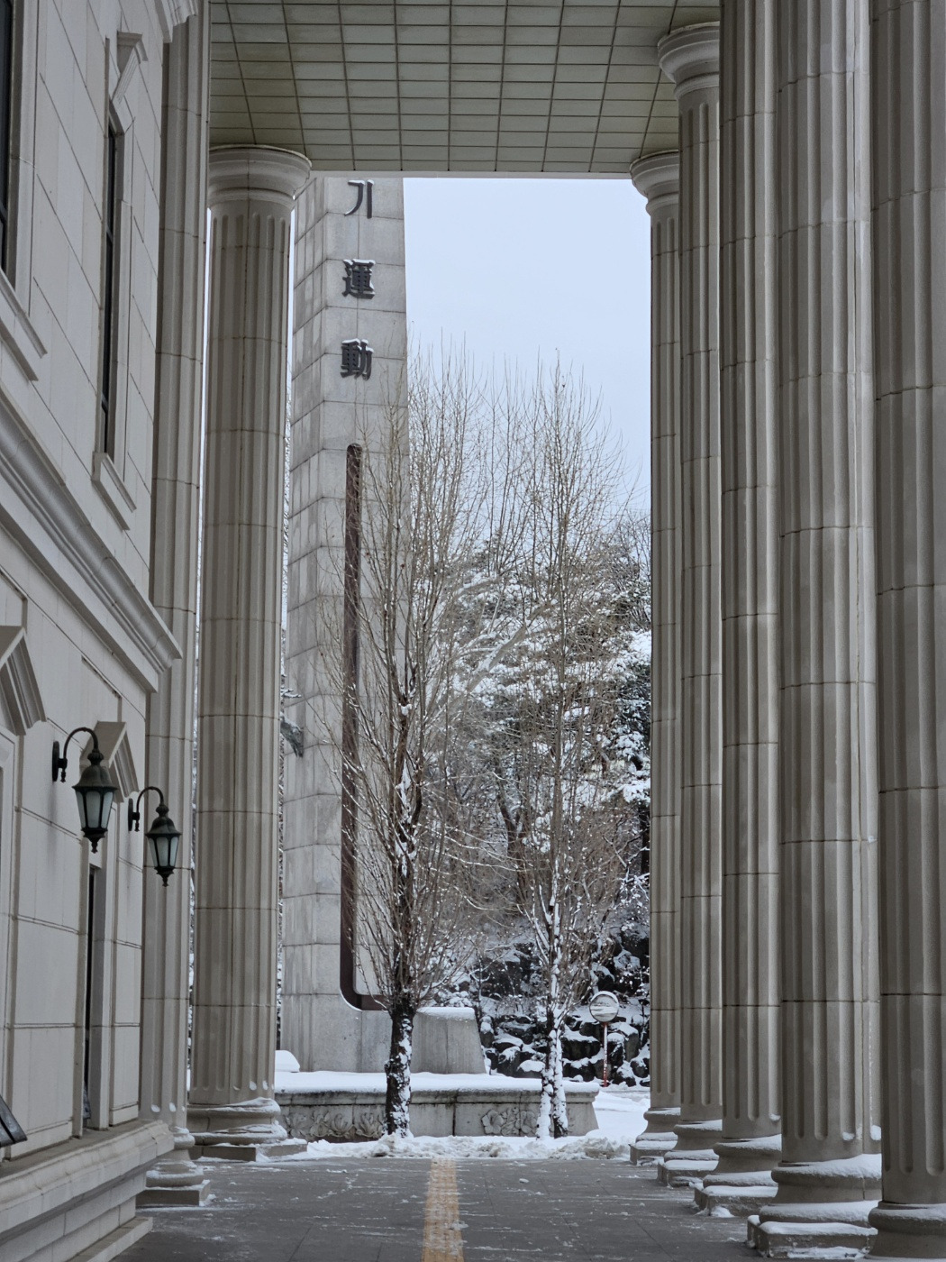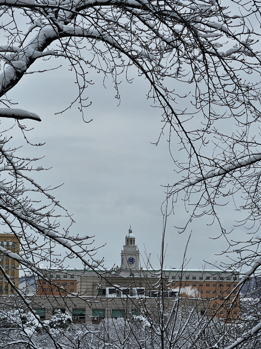 오늘 아침에는 눈이 많이 왔다. 산책코스 중에 늘 같은 자리에서 사진을 찍는데 눈이 올 때마다 늘 타이밍이 안 맞아서 사진을 못 찍었다. 수면 점수도 유난히 높게 나왔겠다 일어나서 물 마시고 사진 찍을 목적으로 산책을 나섰다.
