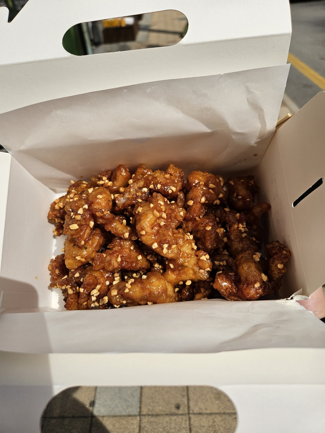 사장님한테 여기저기 가서 먹어봤지만 여기가 제일 나은 것 같다고 이야기를 했다. 맛있다고. 사장님은 여기서 닭강정만 13년을 튀기셨다고 하셨다. 코로나 때 힘드셨다고, 학생들이 학교를 안 오니까 힘들었다고 하셨다. 코로나 전에는 닭강정이 학생들한테 소문이 날 정도로 유명해서 손님도 많았다고 하셨다.