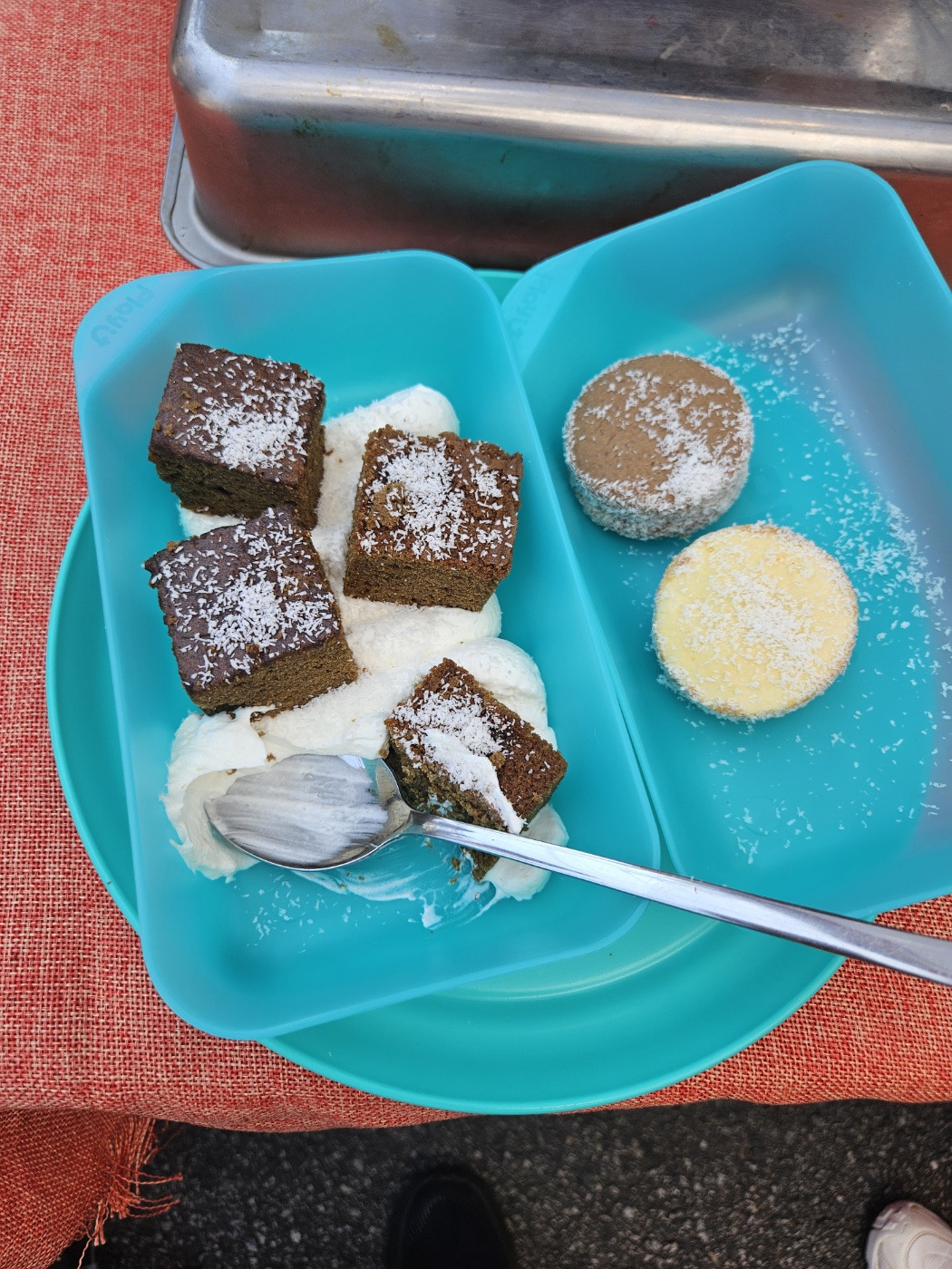 재밌었던 점 3. 청년이음센터에서 알게되서 최근까지 가끔씩 교류하는 청년을 만났다. 그 분은 주민이시니까 그럴 수 있기도 한데 그래도 신기했다. 어머니랑 같이 마실처럼 나오신 것 같았다. 보기 좋았다. 인사를 하고 지나쳤다가 내가 세 번째 접시를 먹으려고 자리를 찾던 시점에 다시 마주쳤다. 그래서 같이 먹게 됐다. 청년의 어머니는 비건이셔서 비건 음식을 드시러 오셨는데 나에게 호박죽을 덜어주셔서 감사하게 먹었다. 딸인 청년이 어머니를 조금 단속하려는 움직임을 취했지만 그런 일들은 늘 그렇듯 성공하는 일이 없다. 그 모습을 지켜보는 것도 왠지 모르게 흐뭇해지는 일이었다.