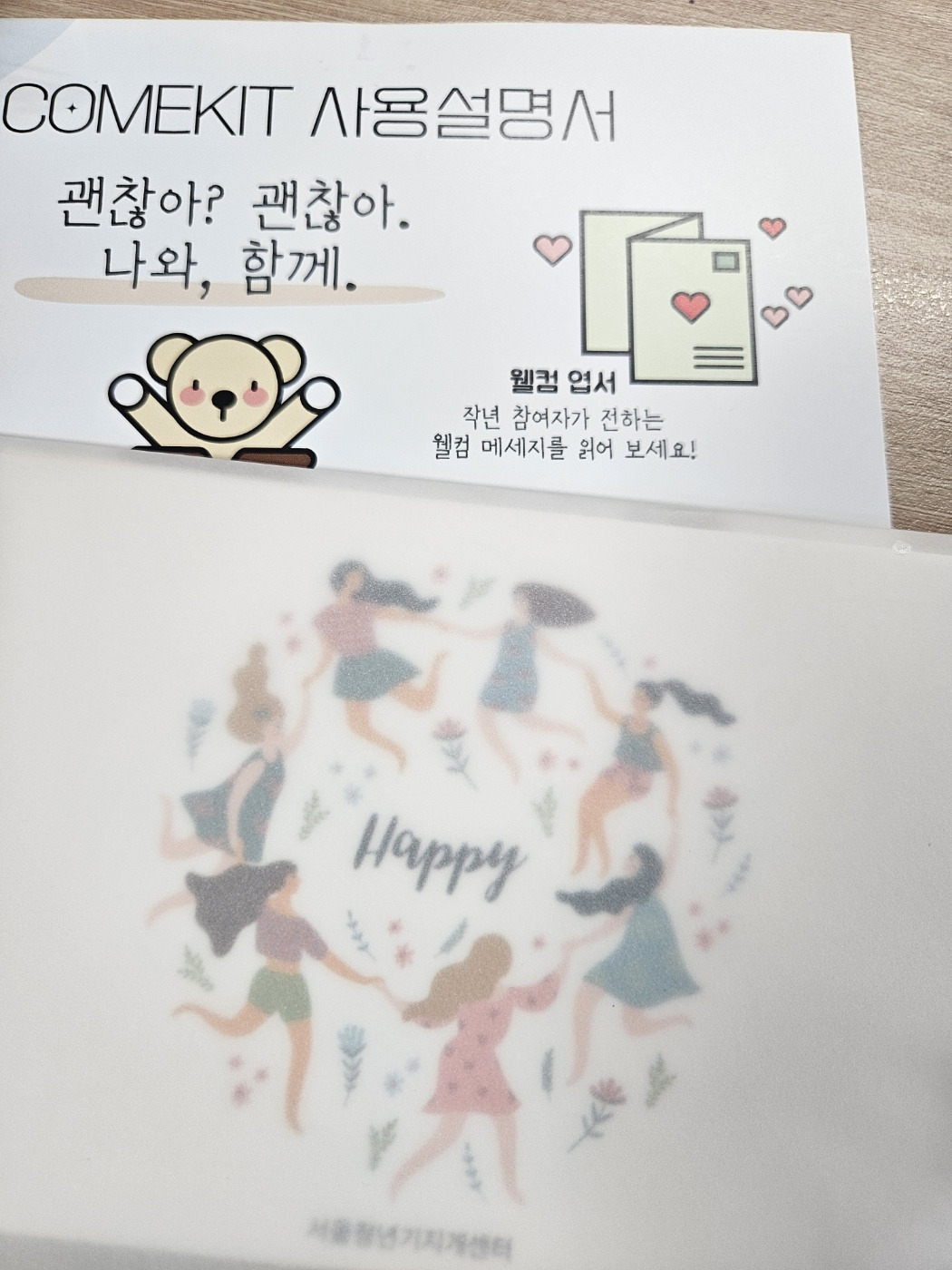 집에 돌아와서 웰컴키트를 보니(기숙사 방도 이제는 집이라고 하는 게 편하다) 여러 가지가 들어있었다. 그중에 온열수면안대와 스트레칭 밴드가 다시 한번 센터 측 섬세함을 느끼게 해 주었다. 잘 자고, 잘 움직일 수 있는 것이 마음 건강에 중요하니까. 잘 자기 위해 근 1년 동안 최소 다섯 가지 노력을 꾸준히 하고 있는 나로서는 간증할 것이 많다. 사람들이 몰라서 안 하는 게 아니니까 그 간증을 입 밖으로 내본 적은 없고 내 수면 점수가 굉장히 안정적으로 잘 나오게 된 것에 스스로 대견해하고 말 뿐이다.