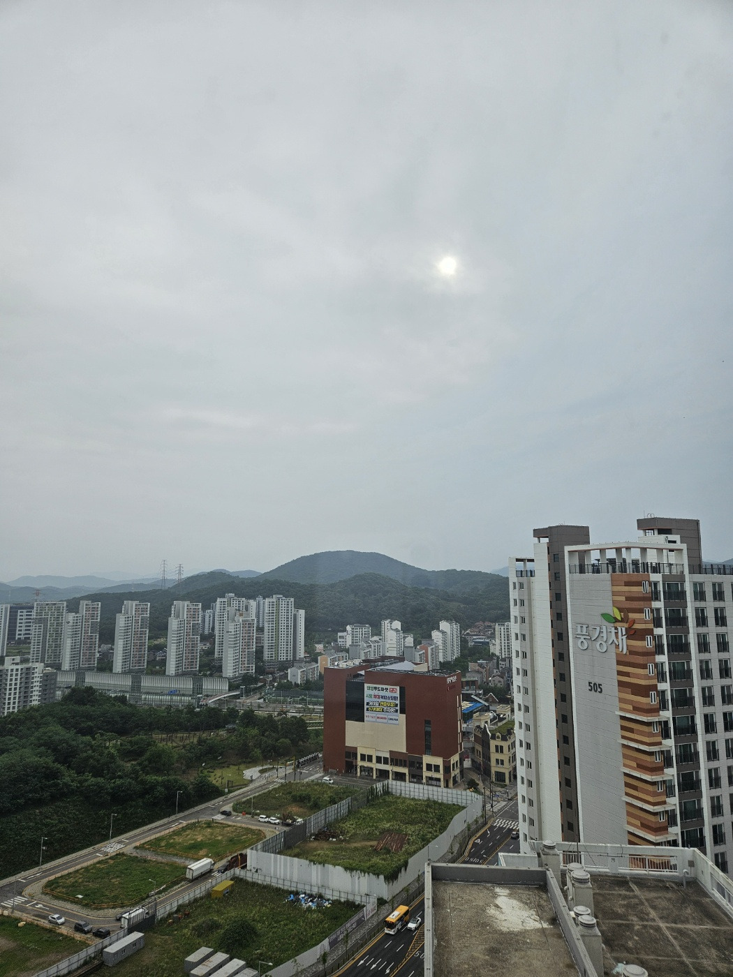 아침 산책을 나가면서 아파트 복도 창으로 본 동네 모습
