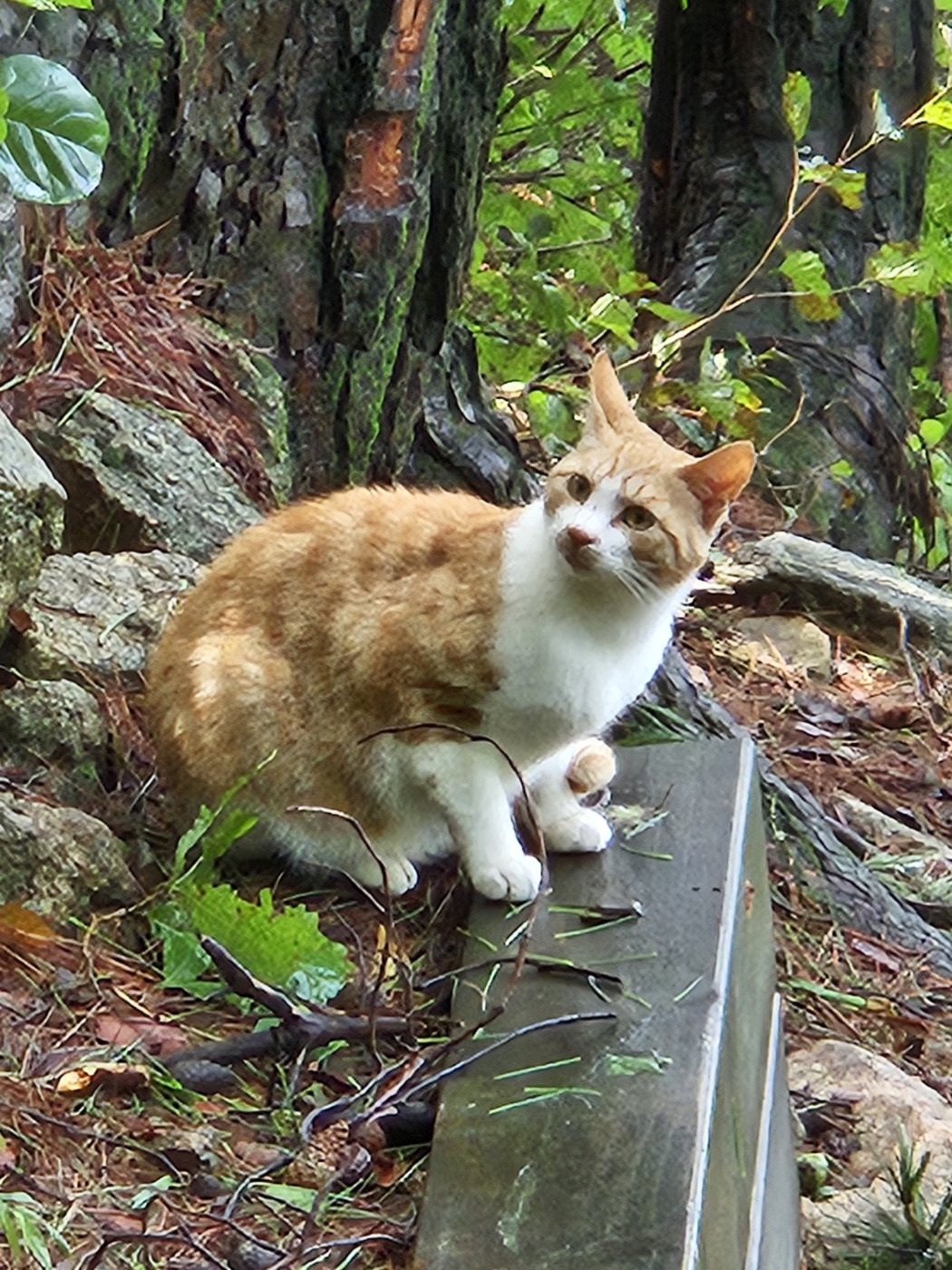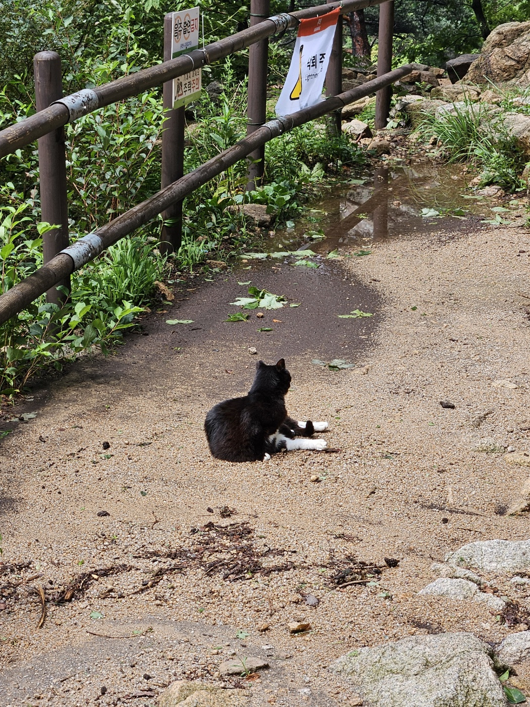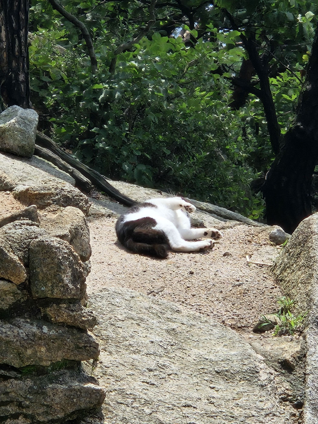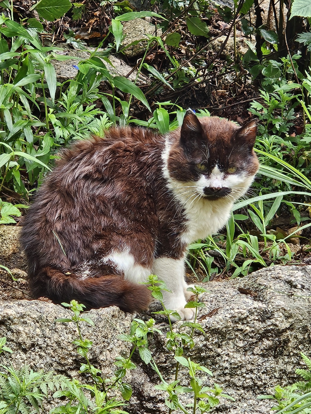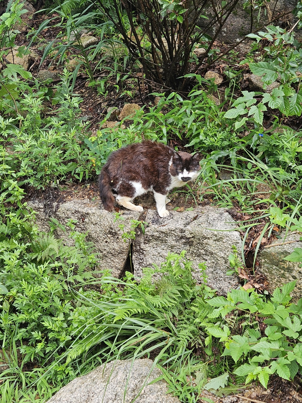 그러다 장대비가 그치고 해가 나서 그런 것인지, 하산길에 갑자기 고양이들이 계속해서 나타났다.