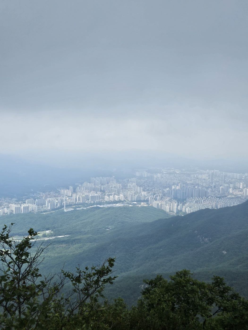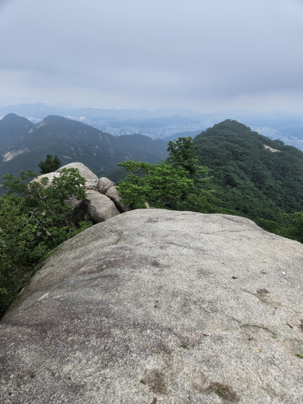 정상에서 바위 끝에 걸터앉아 생명체 같은 도시를 내려다보며 두 번째 단백질바와 물을 마셨다. 가져온 물의 양이 모자라 나도 뭐 하나 사야 될 것 같아 아저씨한테 갔다.