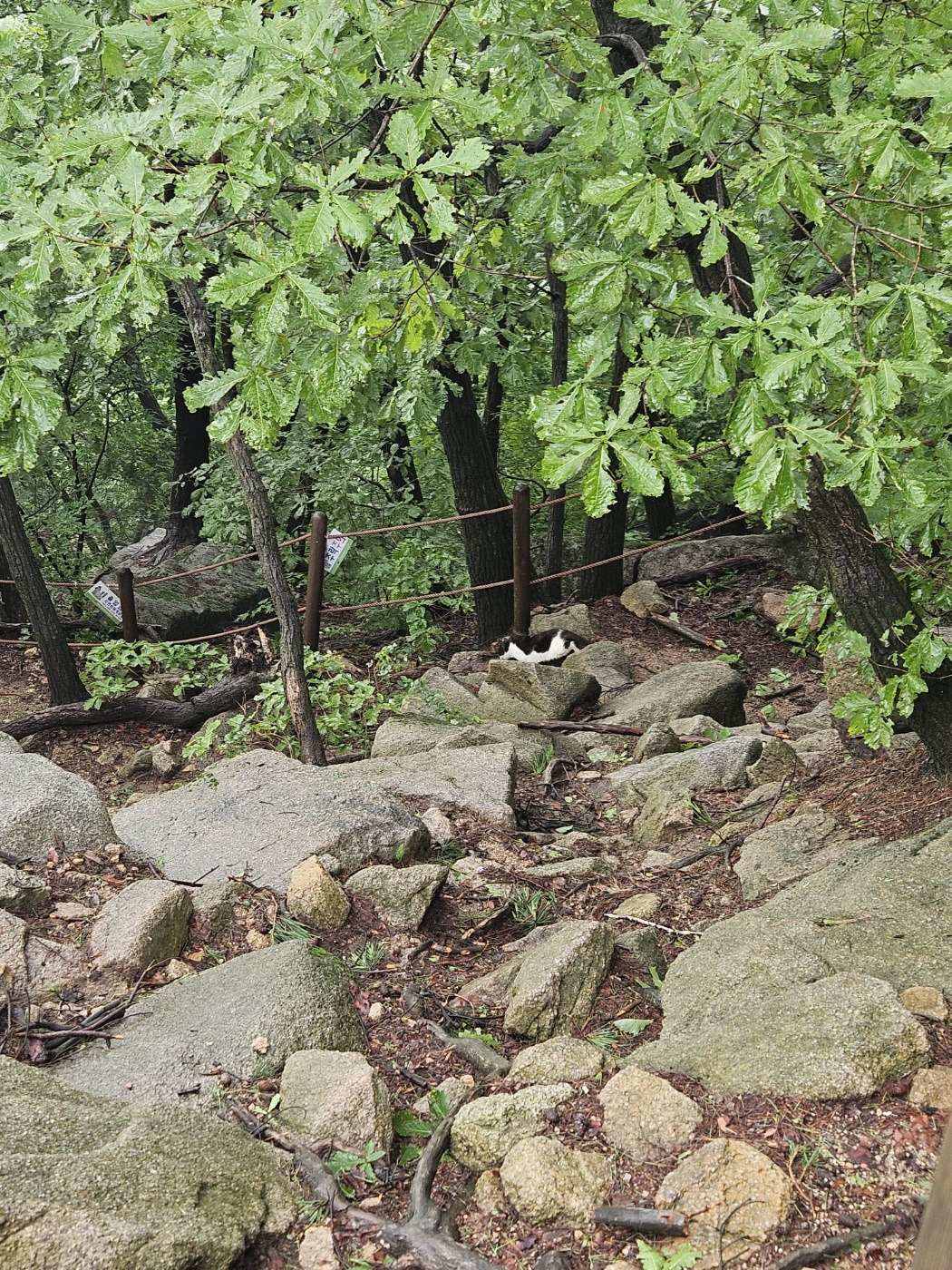 고양이가 이내 등산로가 아닌 비탈로 사라지는 바람에 놓쳐버렸다. 좀 아쉬운 상태로 계속 내려갔다.