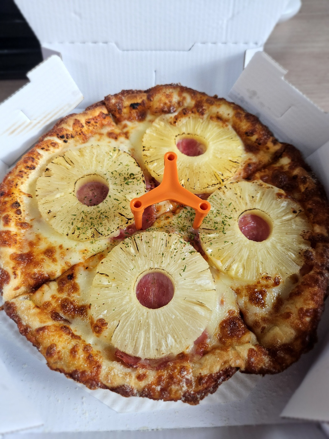 버스를 타고 집으로 돌아오면서 전화로 미리 주문한 피자를 받아서 들어왔다. 지나가면서 보고 언제 한 번 먹어야겠다고 생각했었는데 오늘이 적기인 듯했다. '베이컨 하와이안 피자 P'