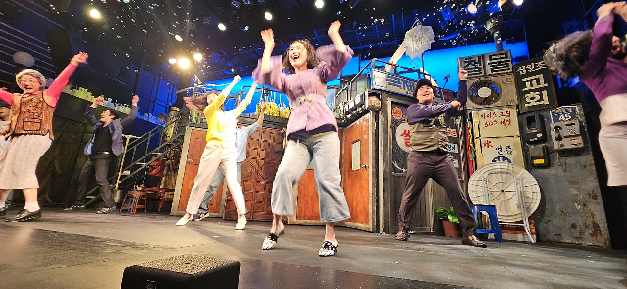 공연이 끝나고 유니플렉스 건물을 나와 가벼워서 촉촉한, 기분 좋게 떨어지는 비를 맞으며 집으로 돌아가는 사람들이 모두 하나같이 좋은 공연이었다며 가족과 친구, 연인과 행복해했다. <빨래>는 그런 공연이었다. "1+1, -1"이나 "빵"의 제일서점 창립 신화 같은 재치 있는 장면들, 그리고 그 밖에 뛰어난 노래, 연기 등을 일일이 늘어놓고 싶지는 않다.
