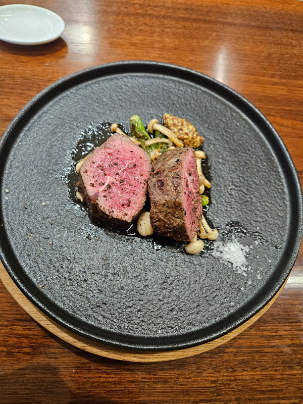 다시 엘리베이터 앞에서 이모와 포옹을 하고 사촌동생과 레스토랑으로 갔다. 여러 가지 먹었지만 스테이크가 가장 맛있었다. 사실 난 이번에 메뉴 선택에 실패했다.