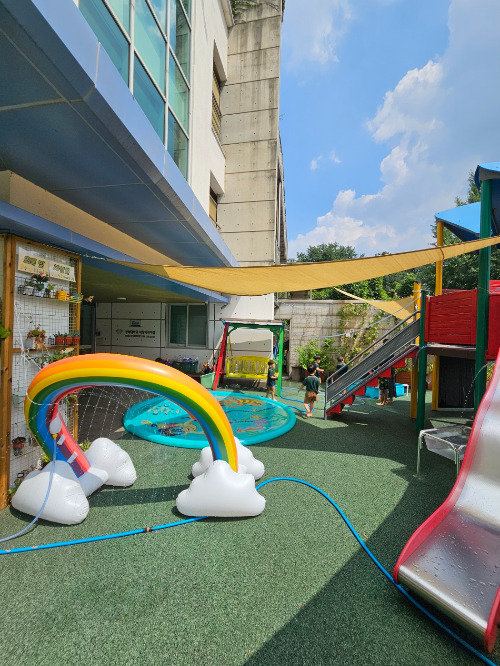 물놀이가 끝나고 아이들이 낮잠을 잘 동안 담임선생님들과 놀이터 뒷정리를 했다. "선생님, 마무리는 제가 하고 갈게요." 하고 뭐라고 부르는지 모르는 물건에서 남은 물을 짜냈다. 세게 잘 짰을 때 물총같이 멀리 뻗는 물줄기를 보면서 '나도 물놀이하네.' 생각했다. 재밌고 외로웠다.