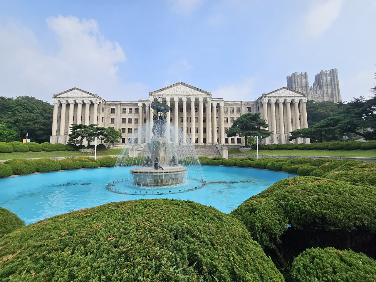 24일 아침, 운동 후 산책하면서 본 분수. 시원한 물소리가 들려서 갔다. 작동 중인 분수는 처음 본 것 같았고 굉장히 기분이 좋아졌다.