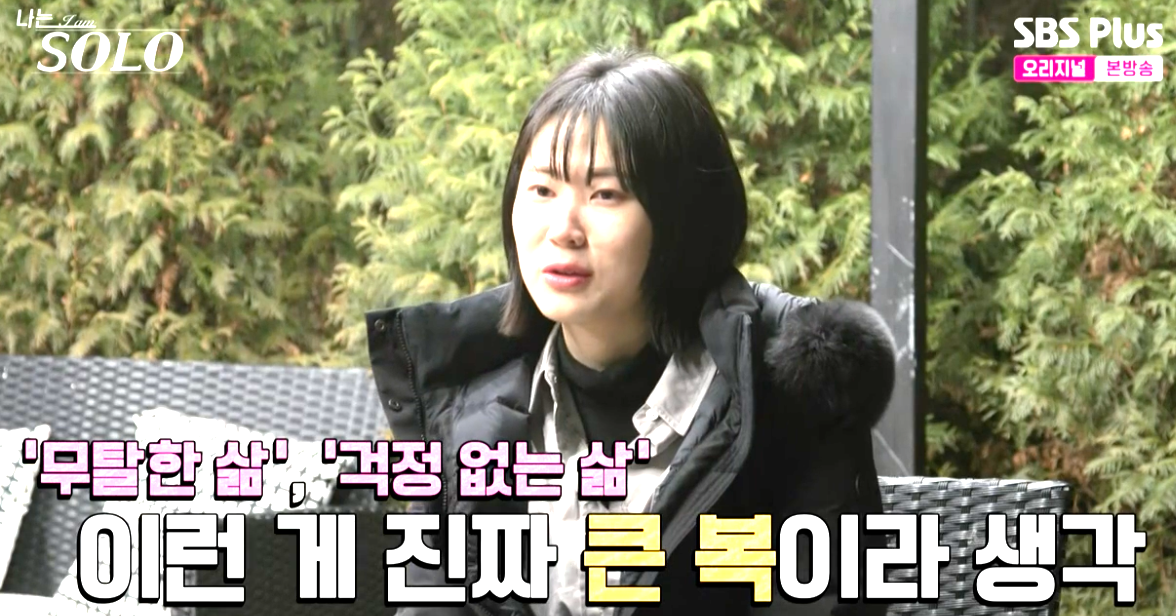 나는 솔로 20기 영자는 “일상을, 좋아하는 사람 만나고 좋아하는 취미 하며 걱정 없이 사는 게 제일 큰 복이다”라고 했다.