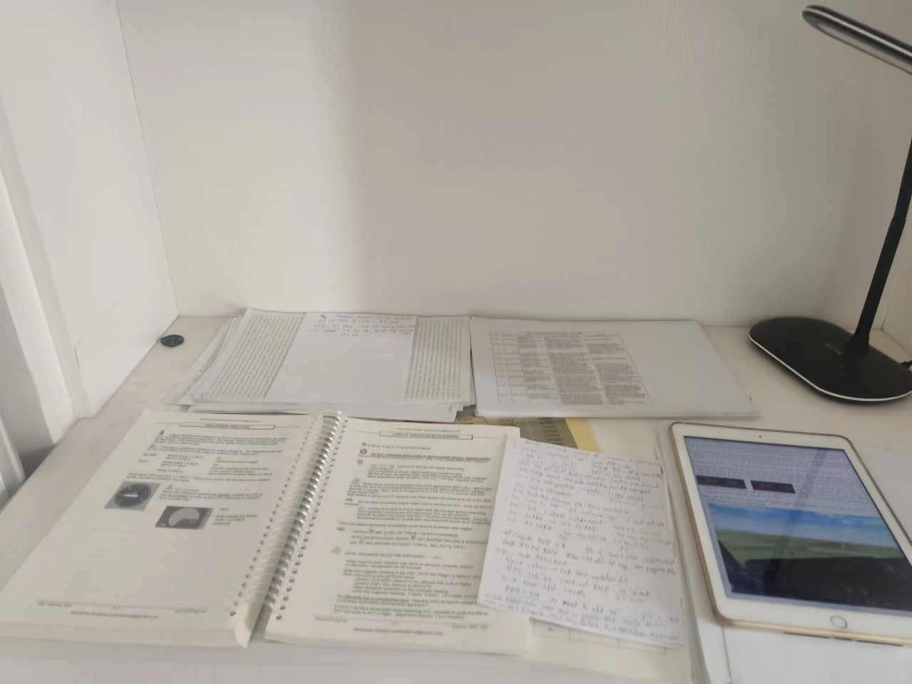 보통은 시뮬레이션 2~3일 전부터 공부를 시작하는데, 이번에는 무려 열흘 전부터 시작했다. 비행을 마치고 집에 왔던 날에도 그동안 했던 비정상 과목들을 정리하며 공부했다. 몸은 무겁고 정신은 지쳐서 소파에 엉덩이를 걸치고 맥주 한 잔 하며 드라마 보는 것이 무척이나 당겼지만 억지로 엉덩이를 책상 의자에 붙였다.