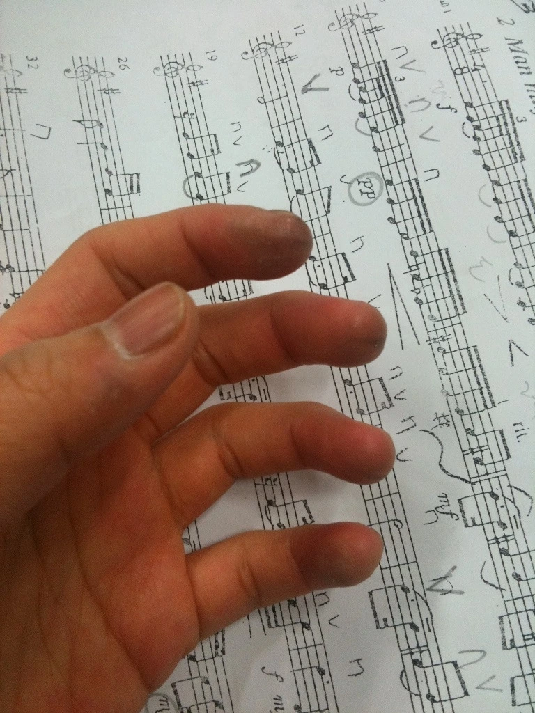 오케스트라 단원으로서 하는 연주는 One of them일 뿐이지만, 독주회는 홀로 주목 받아야 한다. 손가락의 굳은 살이 평소보다 더 두꺼워지도록 연습하게 만든다