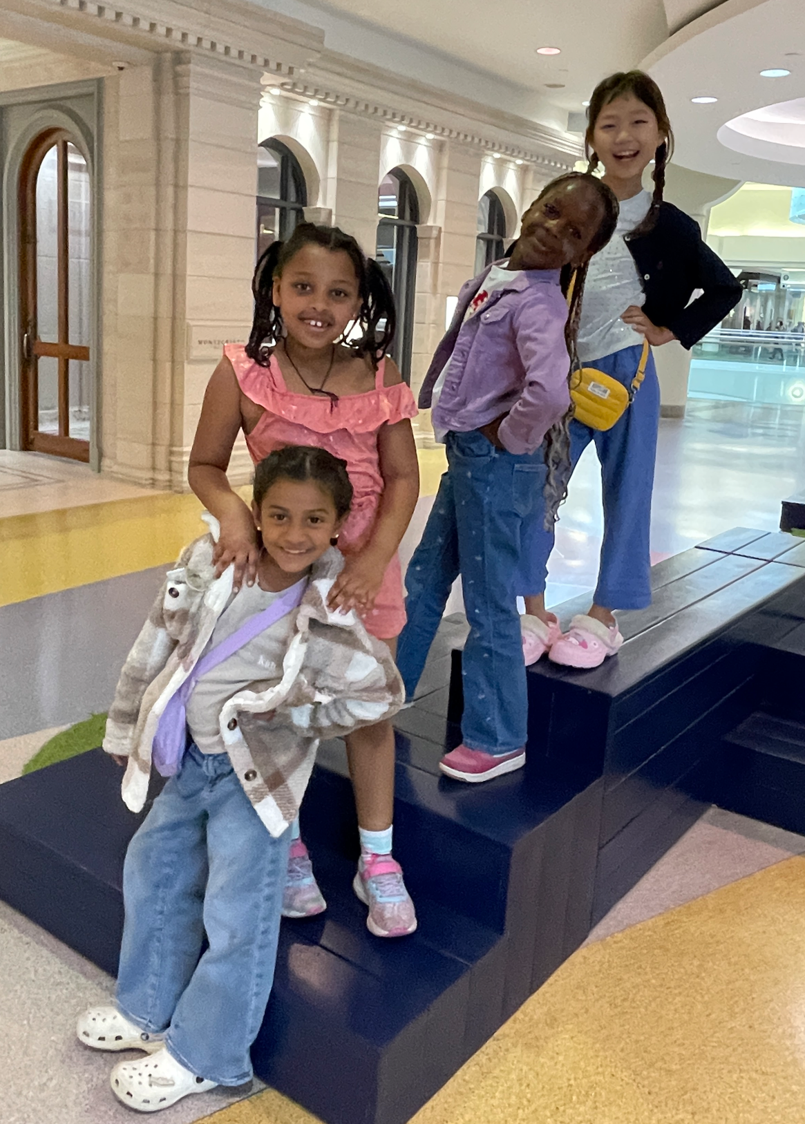 우리 딸, 인도계 친구, 아프리카계 친구 둘.