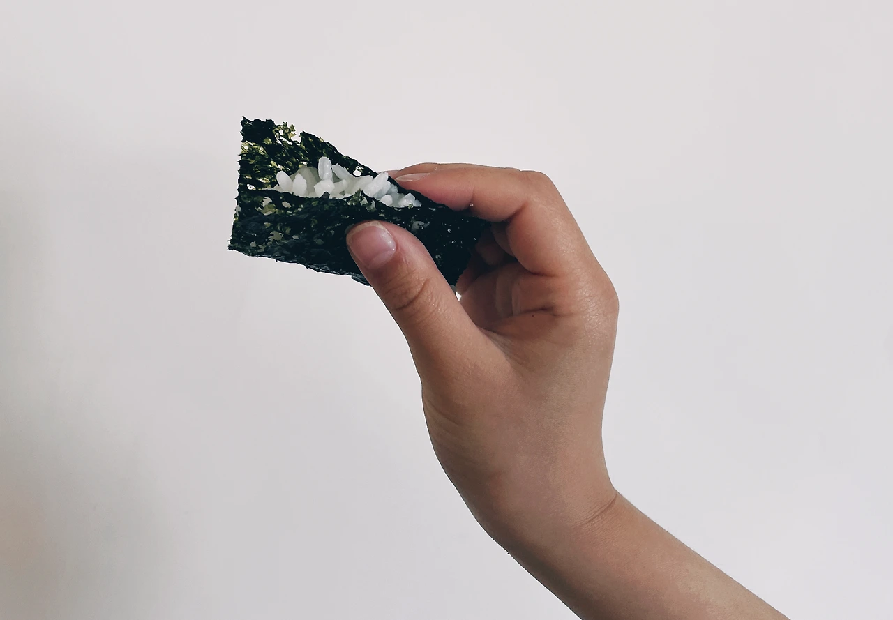 김 위에 밥을 올렸을 때,