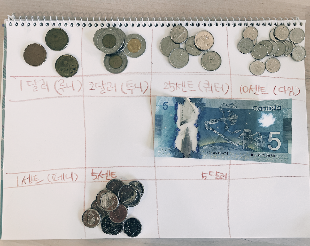 첫 번째는 낯선 캐나다 화폐에 익숙해지기 위함이었어요. 카드 결제가 많다 보니 지폐나 동전을 직접 다룰 기회가 적더라고요.